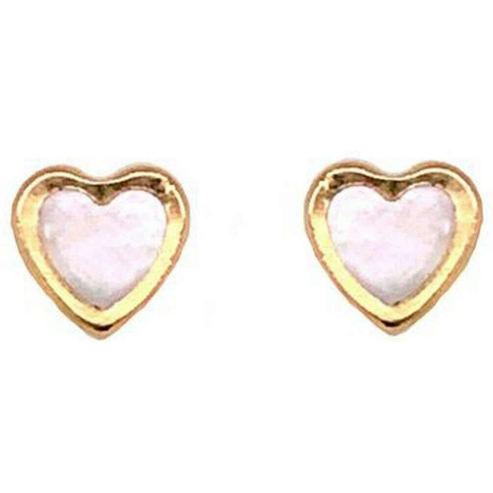 These women's mother of pearl heart studs by the brand Mark Milton are made from 9ct gold and are showcased in gold. It measures 0.7cm(height) x 0.7cm(width) x 0.2cm(depth). All the earrings come complete with mark milton packaging. The Mark Milton Mother Of Pearl Heart Studs - Yellow Gold/White are a beautiful pair of earrings that feature a mother of pearl stone encased with gold. This pair of classy earrings are great for gifting to those you love, or a perfect staple to have in your wardrobe.