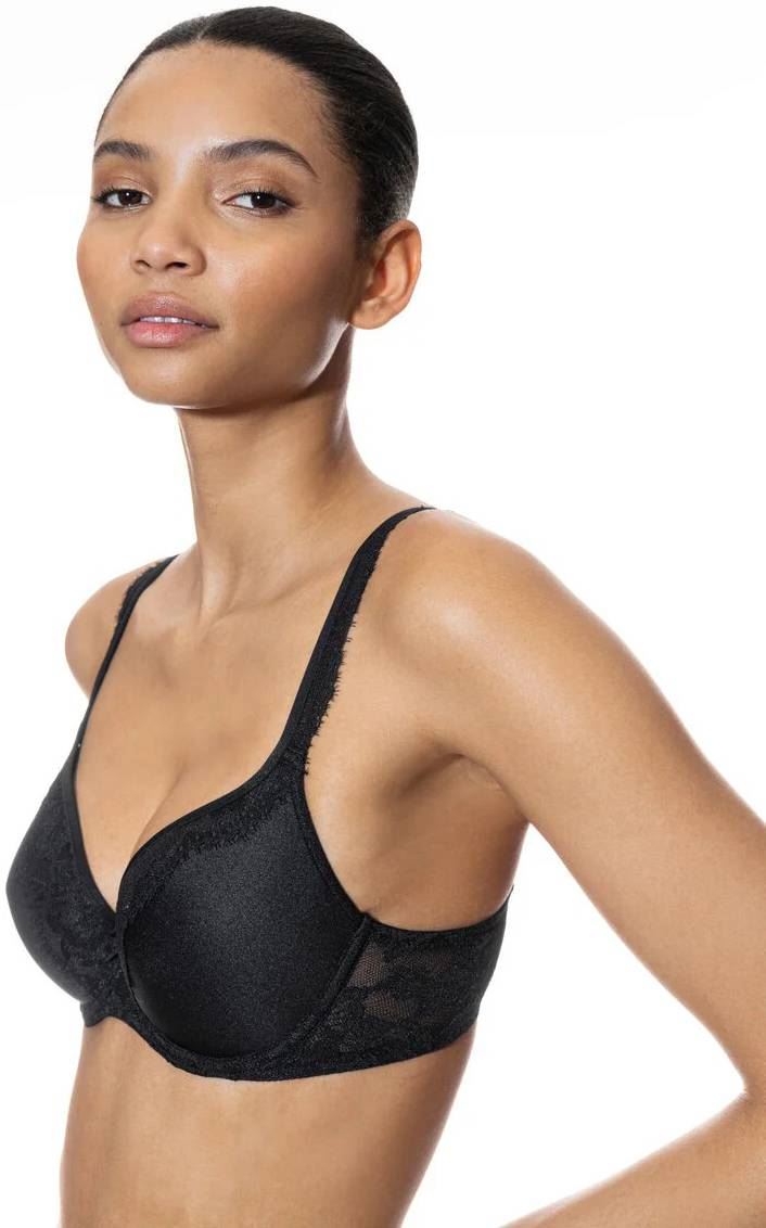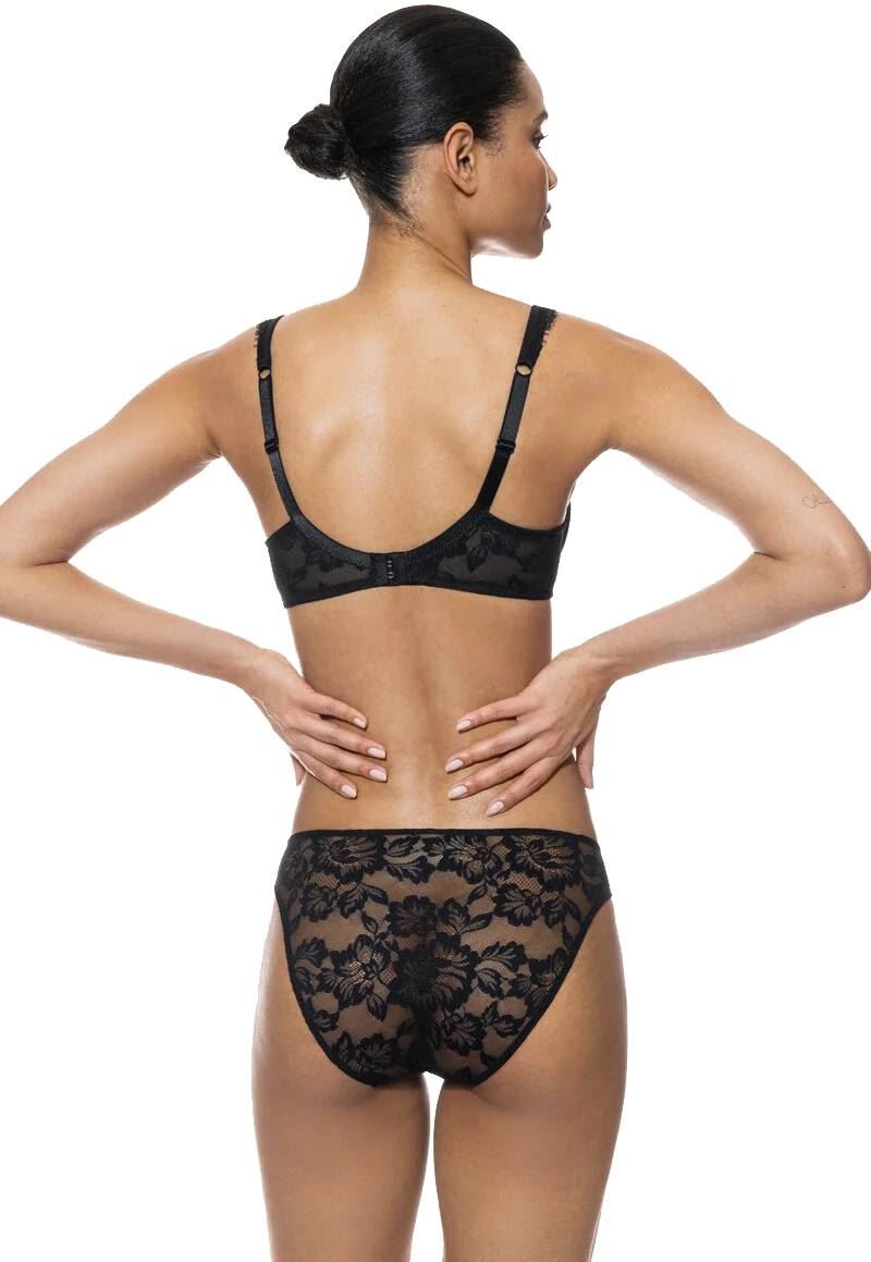 Manufactured from 80% polyamide and 20% elastane is this black women's amazing spacer full cup bra by the designer Mey. Also the black underwear is designed in a plain pattern, It is recommended to hand wash, do not bleach, do not iron, no chemical cleaning to keep this underwear in good condition. All the underwear comes complete in mey packaging. The Mey Amazing Spacer Full Cup Bra - Black is decorated with beautiful floral lace throughout, with eyelash detailing on the straps and cups for a sexy elegance. The under band is fully laced and wired for supreme support. The straps are adjustable and it features a three-way adjustable hook and eyelet fastening for a secure fit.