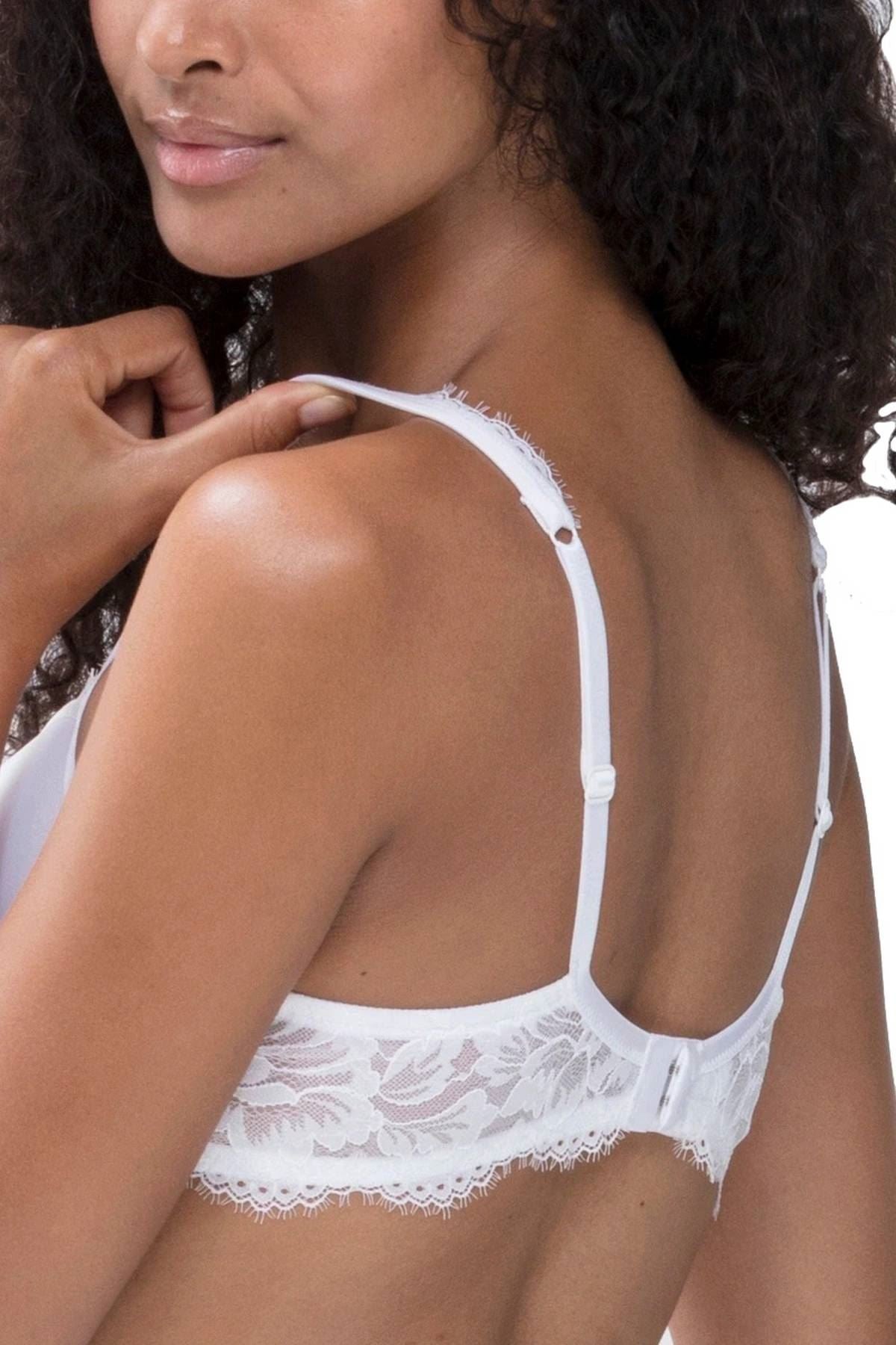 This women's amazing spacer half cup bra by the brand Mey is made from 80% polyamide and 20% elastane and is showcased in white. Also the white underwear is designed in a plain pattern, It is recommended to hand wash, do not bleach, do not iron, no chemical cleaning to keep this underwear in good condition. All the underwear comes complete in mey packaging. The Mey Amazing Spacer Half Cup Bra - White showcases a half cup design with underwire for premium support. This beautiful piece features lace all-over with a gorgeous eyelash detail on the straps, giving it an elegant and feminine finish. The straps are adjustable, and the back has a 3-way adjustable hook and eyelet fastener. It is a breathable and light choice, perfect for any occasion.