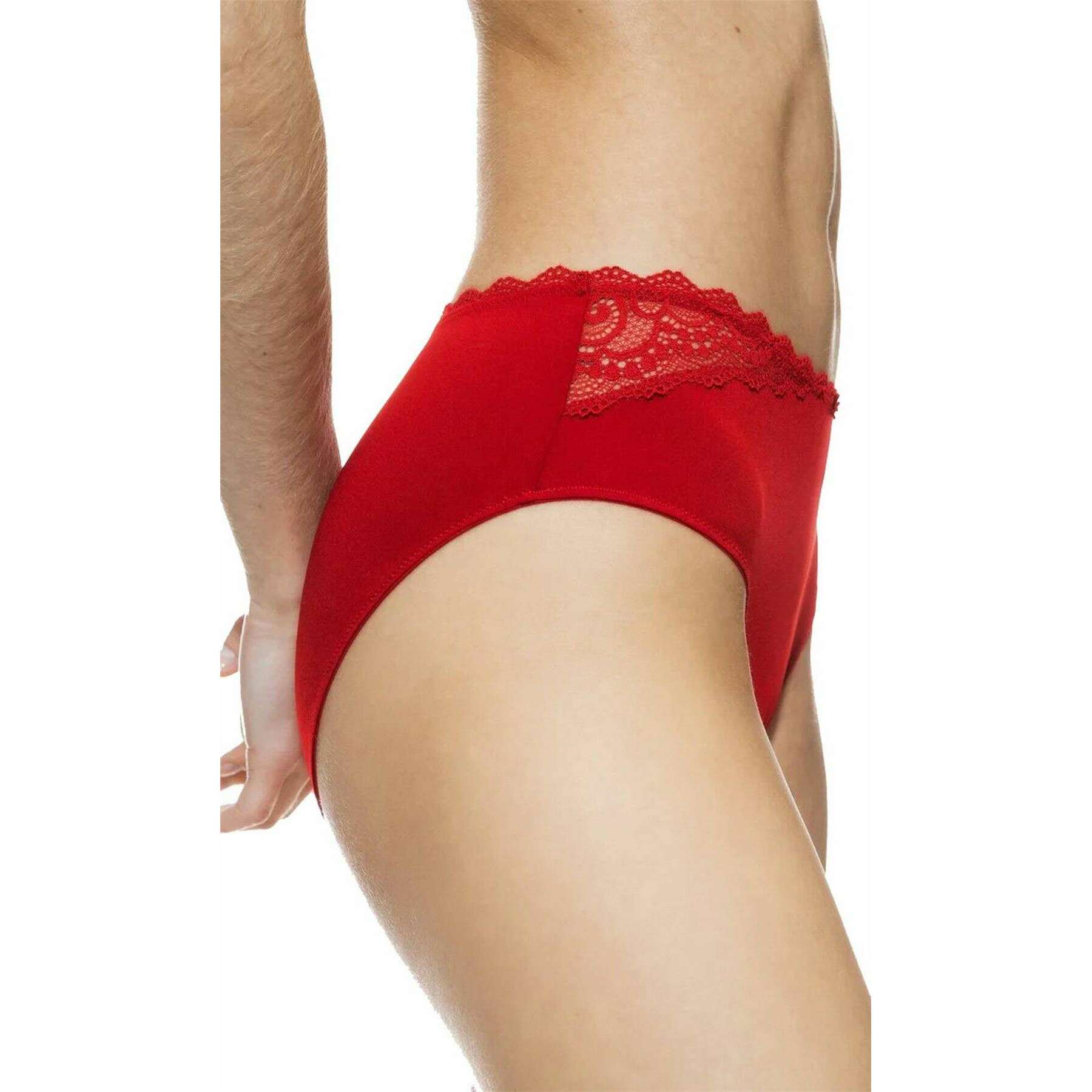Brought to you by the brand Mey, this rubin red women's amorous american pant is made from 87% polyamid and 13% elasthan. Also the rubin red underwear is designed in a plain pattern, It is recommended to gentle wash on 30 degrees, do not iron on a really hot setting, do not tumble dry, do not bleach to keep this underwear in good condition. All the underwear comes complete in mey packaging. The Mey Amorous American Pant - Rubin Red sit higher on the waist, giving you all day comfort while also making you feel sexy and confident. The cotton insert on the gusset ensures both comfort and protection while the seductive lace ensure you elegant. The flat waistband is designed to not dig into your skin, making them the perfect choice for any occasion.