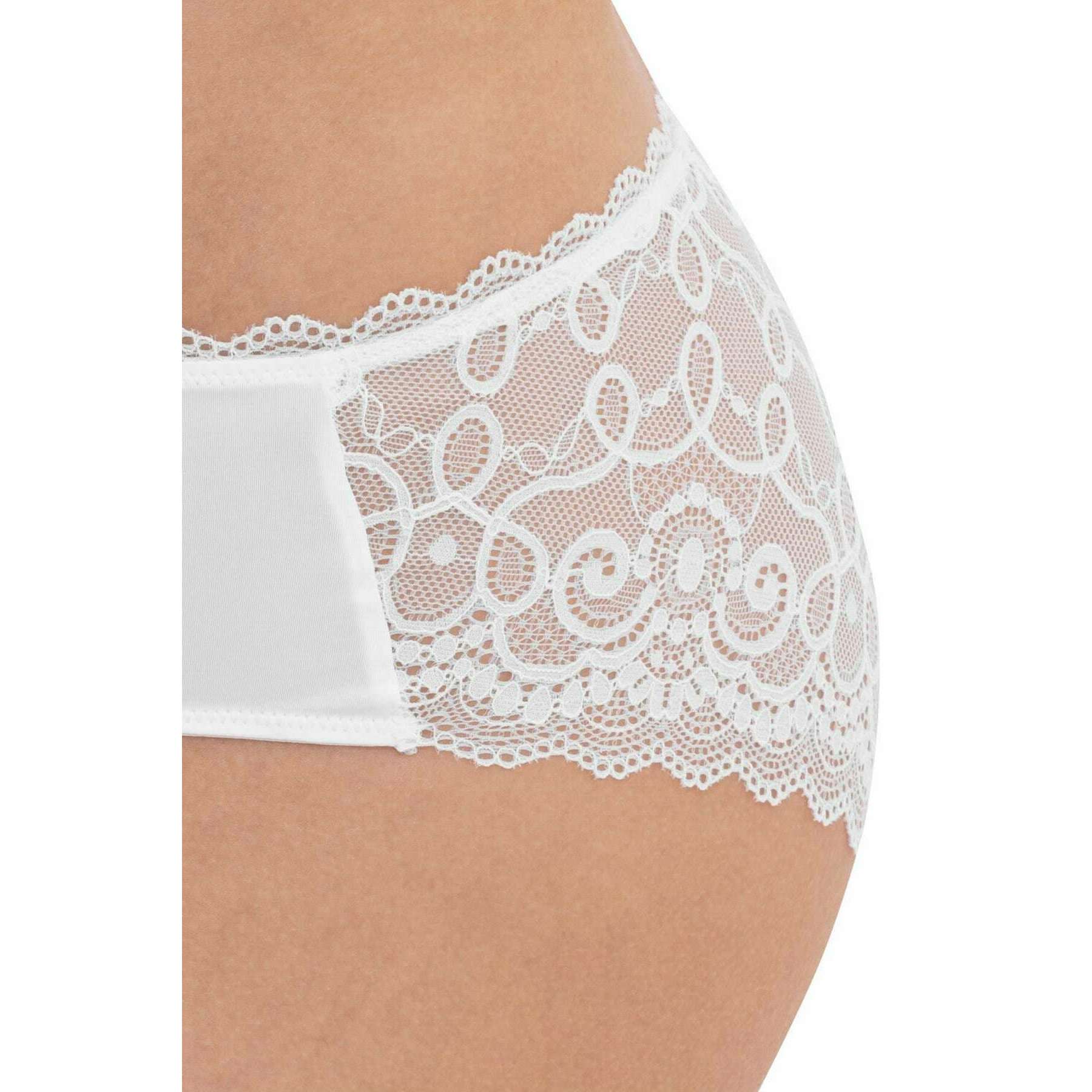 Introducing this women's amorous hipster briefs by Mey, it is manufactured from 87% polyamide and 13% elastane in a white colour. Also the white underwear is designed in a plain pattern, It is recommended to machine wash at 30 degrees to keep this underwear in good condition. All the underwear comes complete with mey packaging. The Mey Amorous Hipster Briefs - White are a must-have if you are looking for a basic with a gorgeous touch for a feminine feel. This pair has a deep mid-rise, a cotton insert on the gusset, seamless legs and a flat waistband which all contribute to giving optimal comfort for an everyday wear. The lace back gives an elegant sexy flair.