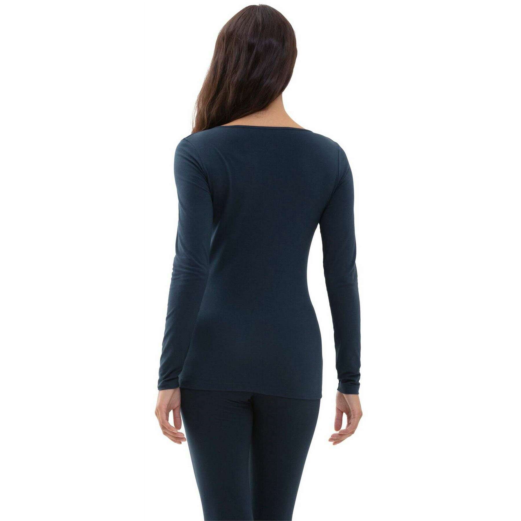 Introducing this women's cotton pure long-sleeved top by Mey, it is manufactured from 94% cotton and 6% elastane in a night blue colour. Also the night blue t-shirt is designed in a plain pattern, It is recommended to machine wash at 60 degrees to keep this t-shirt in good condition. All the t-shirts come complete with mey packaging. The Mey Cotton Pure Long-Sleeved Top - Night Blue features a classic round neckline and a clean, minimalist design that exudes sporty elegance. Crafted for an incredible fit, it delivers exceptional comfort and feels fantastic against the skin. With breathable, skin?friendly fabric that creates a naturally pleasant climate, this top is the ultimate feel?good essential for everyday wear.
