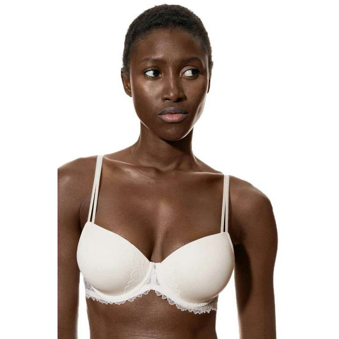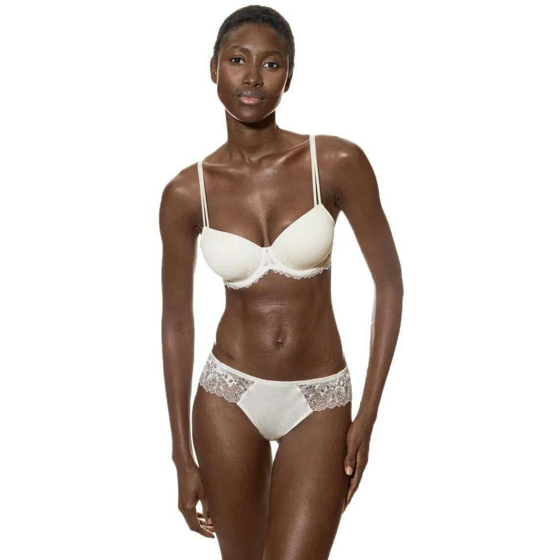 This women's luxurious bi-stretch full cup bra by the brand Mey is made from 87% polyamide and 13% elastane and is showcased in cream. Also the champagne cream underwear is designed in a plain pattern, It is recommended to hand wash only, not suitable for tumble drying to keep this underwear in good condition. All the underwear comes complete in mey packaging. The Mey Luxurious Bi-Stretch Full Cup Bra - Champagne Cream feature a full cup design with padded cups and underwire to give you full support throughout its wear. The bridge has a beautiful decorative pendant as well as elegant lace adorning the bridge and under bust band giving you feminine yet sexy style. The hook and eyelet closure offers a secure fit and the adjustable straps ensure you are comfortable.