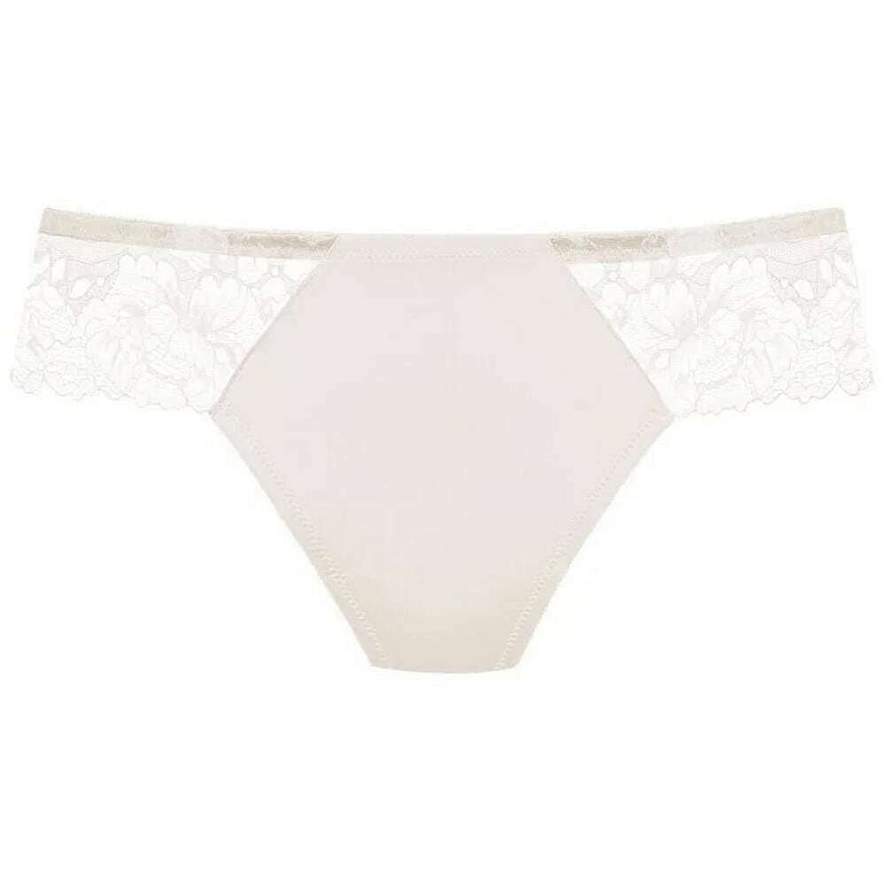 Brought to you by the brand Mey, this champagne cream women's luxurious thong is made from 87% polyamide and 13% elastane. Also the champagne cream underwear is designed in a plain pattern, It is recommended to machine wash at 30 degrees, with delicates, not suitable for tumble drying to keep this underwear in good condition. All the underwear comes complete in mey packaging. The Mey Luxurious Thong - Champagne Cream feature a mid-rise fit with a comfortable and discreet cotton insert on the gusset offering protection and comfort. They have been decorated with delicate lace to give them an elegant and feminine touch, perfect to ensure sexy confidence. The flat waistband is designed to not dig into your skin, making them the perfect choice for any occasion.