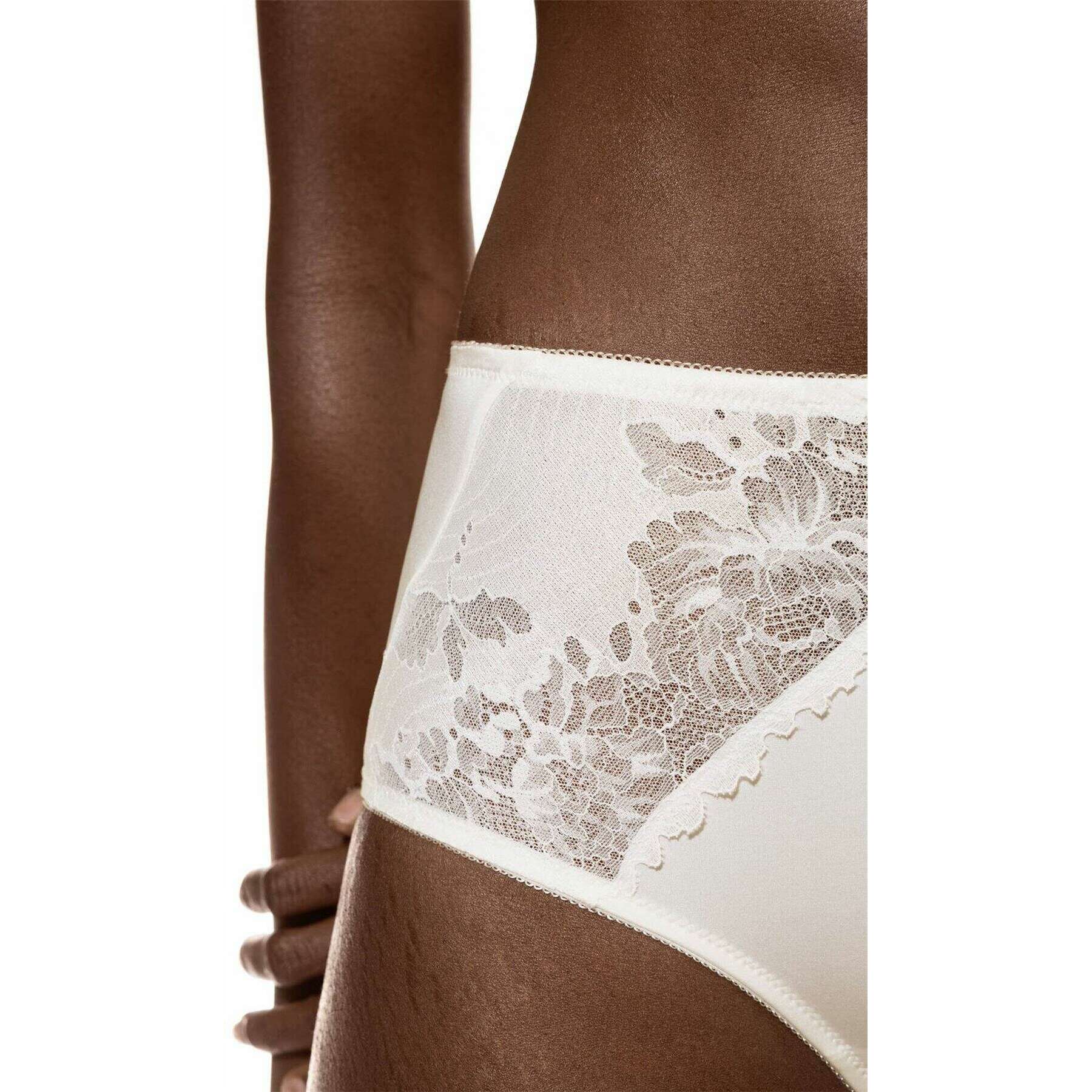 This women's luxurious waist pants has been made from 87% polyamide and 13% elastane, featured in a cream colour and is from the brand Mey. Also the champagne cream underwear is designed in a plain pattern, It is recommended to machine wash at 30 degrees to keep this underwear in good condition. All the underwear comes complete with mey packaging. The Mey Luxurious Waist Pants - Champagne Cream are a must-have if you are looking for a basic with a gorgeous touch for a feminine feel. This pair has a high-waisted fit, a cotton insert on the gusset, seamless legs and a flat waistband which all contribute to giving optimal comfort for an everyday wear. The lace front gives an elegant sexy flair.