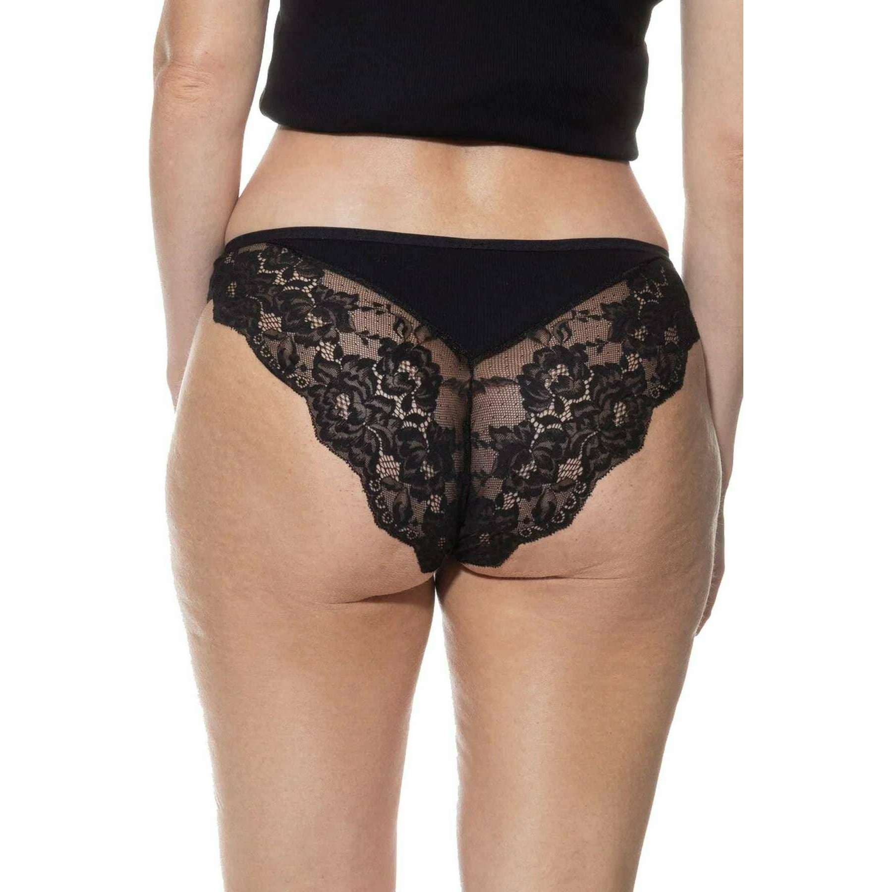 Perfect for women is this Mey black organic cotton mini briefs, it is also made from 94% cotton and 6% elastane. Also the black underwear is designed in a plain pattern, It is recommended to machine wash at 40 degrees with delicates , not suitable for tumble drying to keep this underwear in good condition. All the underwear comes complete in mey packaging. The Mey Organic Cotton Mini Briefs - Black are a must have and will become a staple amongst your collection. The mid-rise fit sits comfortable while the soft leg openings ensure you feel absolute comfort throughout their wear. The gusset has been fitted with a cotton insert for intimate protection and the back is adorned with elegant lace making them essential for your underwear drawer.