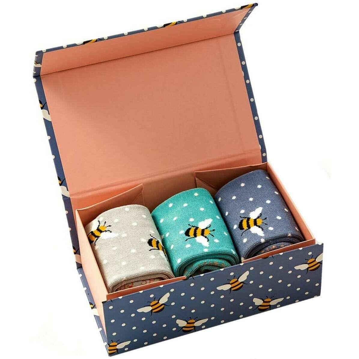 Miss Sparrow London 3 Pack Bumble Bee Sock Box - Green/Blue/Grey