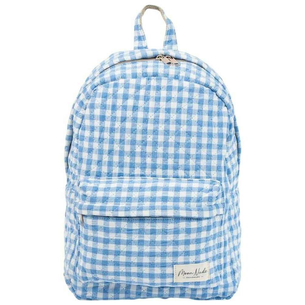 Perfect for women is this Moon Nude blue/white azure backpack, it is also made from 100% cotton. It measures 40cm(height) x 28cm(width) x 13cm(depth). It is recommended to wash by hand in cold water with a mild detergent, or maching wash inside out on a delicate cycle. to keep this bag in good condition. All the bags come complete with moon nude packaging. The Moon Nude Azure Backpack - Blue/White features a beautiful handmade quilted design. Perfect for on the go, whether that s for work or everyday use. This bag has an exterior pocket with zip, perfect for any bits and bobs you may have. The interior is spacious and offers a back compartment for your laptop or tablet.