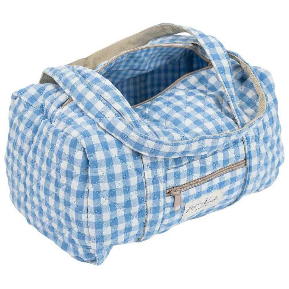 Manufactured from 100% cotton is this blue/white women's azure mini duffel bag by the designer Moon Nude. It measures 18cm(height) x 31cm(width) x 18cm(depth). It is recommended to wash by hand in cold water with a mild detergent, or maching wash inside out on a delicate cycle. to keep this bag in good condition. All the bags come complete with moon nude packaging. The Moon Nude Azure Mini Duffel Bag - Blue/White features a beautiful handmade quilted design. This bag features an exterior zip pocket, a spacious interior and two large handles, perfect for a casual going out bag or as a gift.