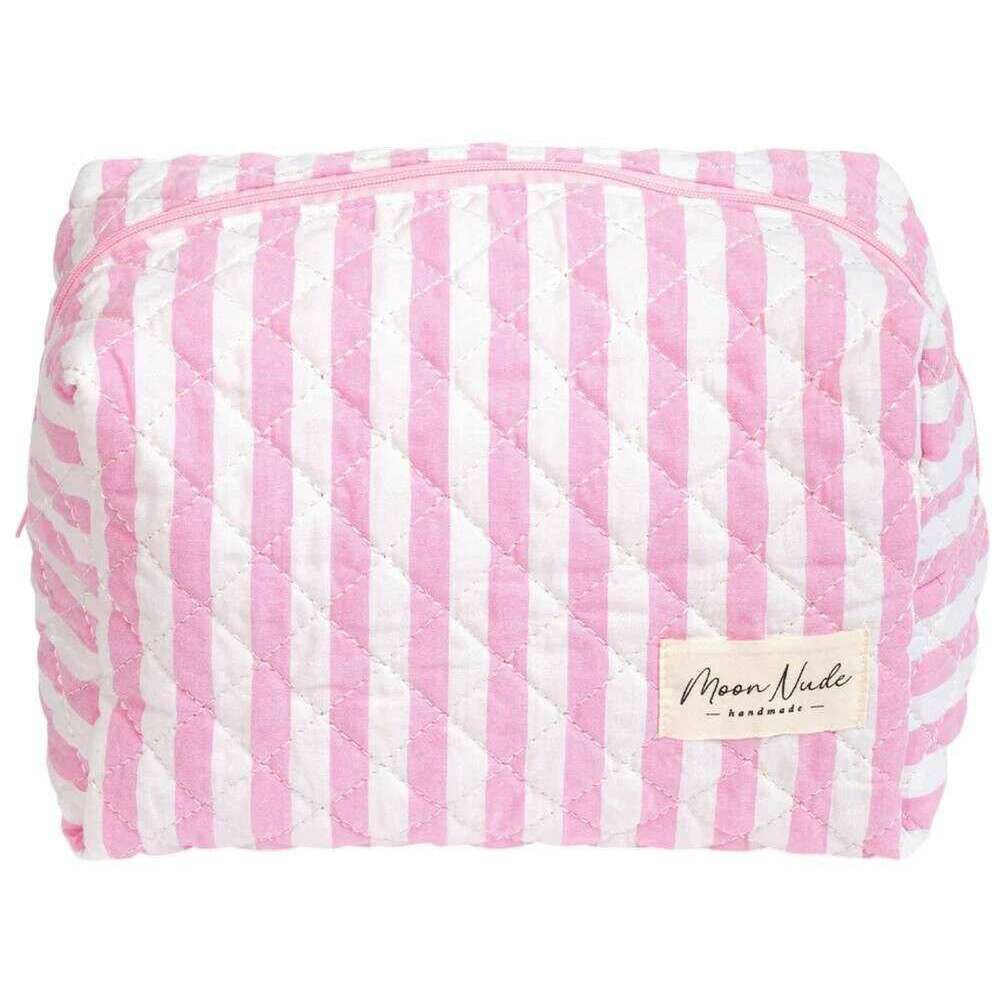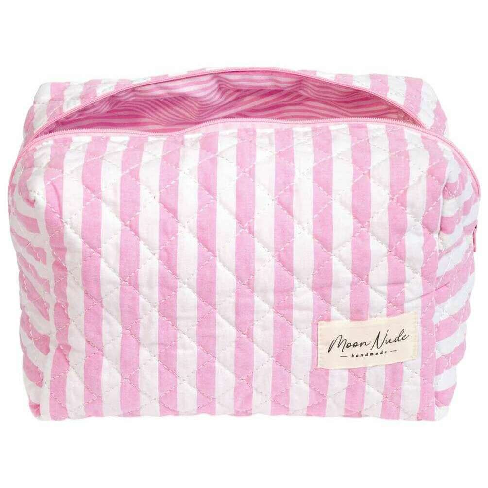 Using pink 100% cotton, this barbie large makeup bag by Moon Nude is perfect for women and a must have. It measures 15cm(height) x 25cm(width) x 15cm(depth). It is recommended to wash by hand in cold water with a mild detergent, or maching wash inside out on a delicate cycle. to keep this bag in good condition. All the bags come complete with moon nude packaging. The Moon Nude Barbie Large Makeup Bag - Pink/White is an absolute necessity for your room or everyday bag. This makeup bag is guaranteed to keep all your most used products together and safe, whilst also being stylish and chic with its handmade quilted design.