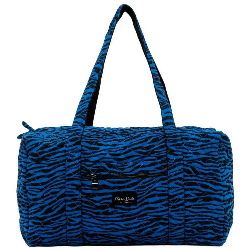 This well made women's mirage large duffel bag from Moon Nude comes in a blue/black colour and is manufactured from 100% cotton. It measures 30cm(height) x 50cm(width) x 28cm(depth). It is recommended to wash by hand in cold water with a mild detergent, or maching wash inside out on a delicate cycle. to keep this bag in good condition. All the bags come complete with moon nude packaging. The Moon Nude Mirage Large Duffel Bag - Blue/Black features a beautiful handmade quilted design. This bag features an exterior zip pocket, a spacious interior and two large handles, perfect for weekend getaways or carrying lots of belongings.