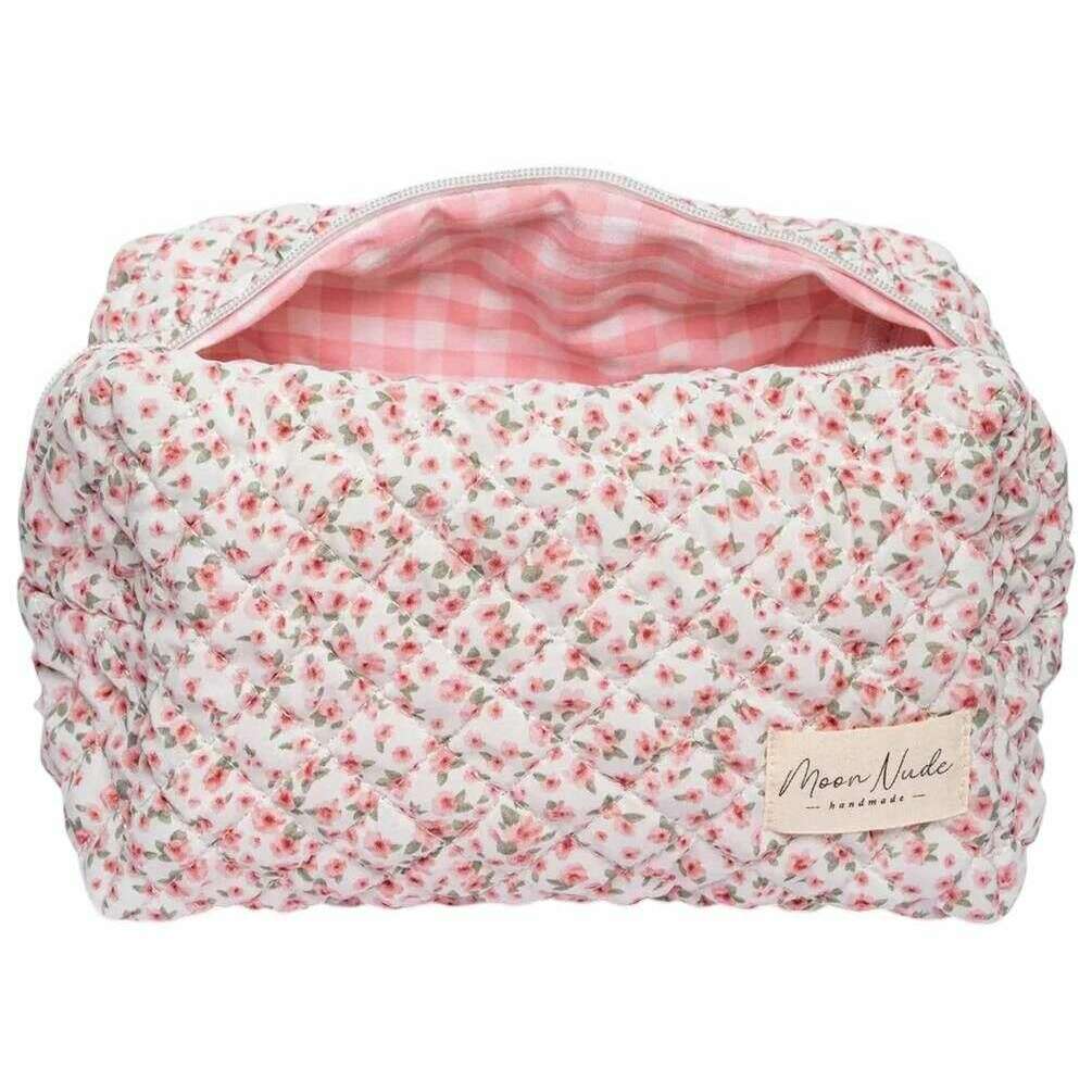 This women's peony large makeup bag by the brand Moon Nude is made from 100% cotton and is showcased in white. It measures 15cm(height) x 25cm(width) x 15cm(depth). It is recommended to wash by hand in cold water with a mild detergent, or maching wash inside out on a delicate cycle. to keep this bag in good condition. All the bags come complete with moon nude packaging. The Moon Nude Peony Large Makeup Bag - White/Red/Green is an absolute necessity for your room or everyday bag. This makeup bag is guaranteed to keep all your most used products together and safe, whilst also being stylish and chic with its handmade quilted design.