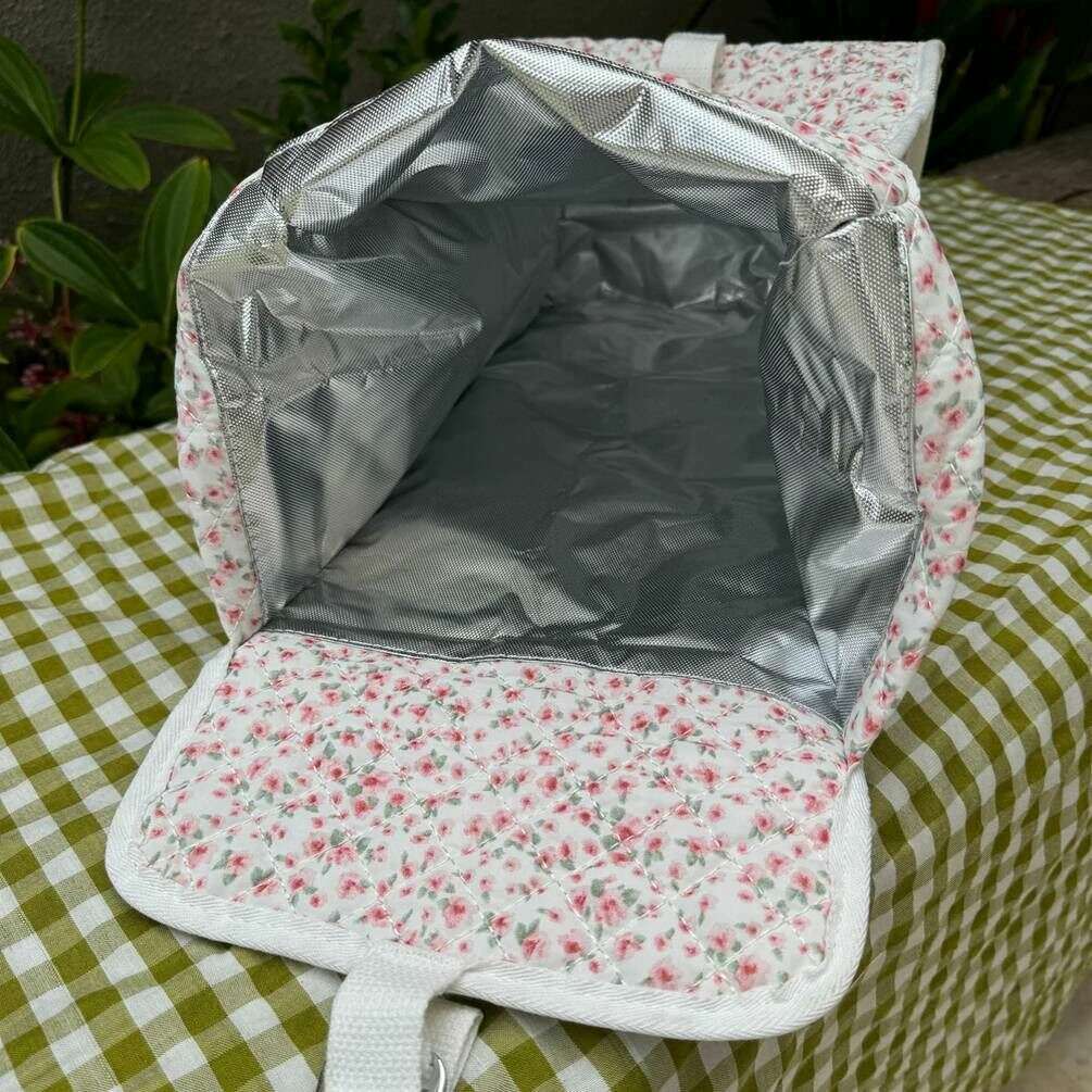 • Top Carry Handle , Handmade , Adjustable Buckle Closure , Insulated Interior , Lightweight , Product Branding on Exterior , Quilted Exterior