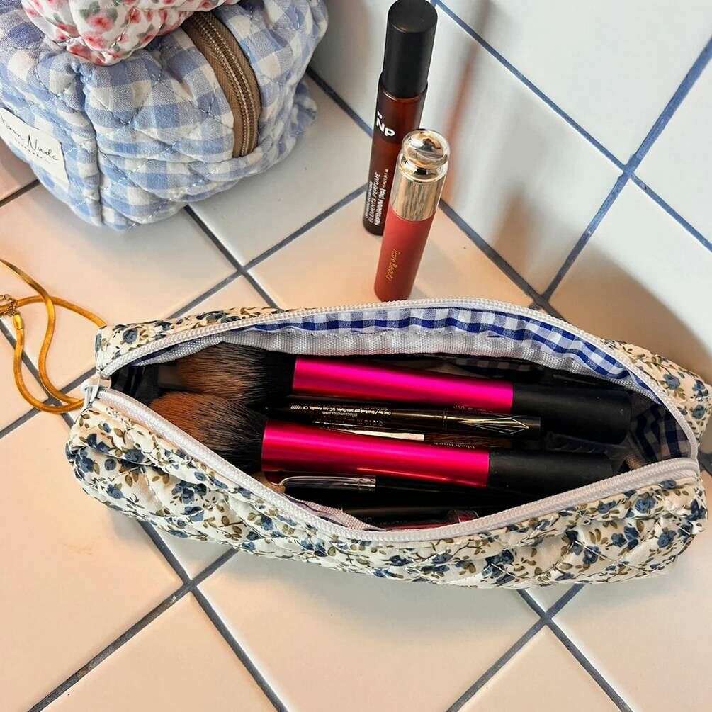 This women's spring pencil case by the brand Moon Nude is made from 100% cotton and is showcased in blue. It measures 7cm(height) x 24cm(width) x 6cm(depth). It is recommended to wash by hand in cold water with a mild detergent, or maching wash inside out on a delicate cycle. to keep this pencil case in good condition. All the pencil cases come complete with moon nude packaging. The Moon Nude Spring Pencil Case - Blue/Green is an absolute necessity for work or school. This pencil case is guaranteed to keep all your stationary in one place, whilst also being stylish and chic with its handmade quilted design.