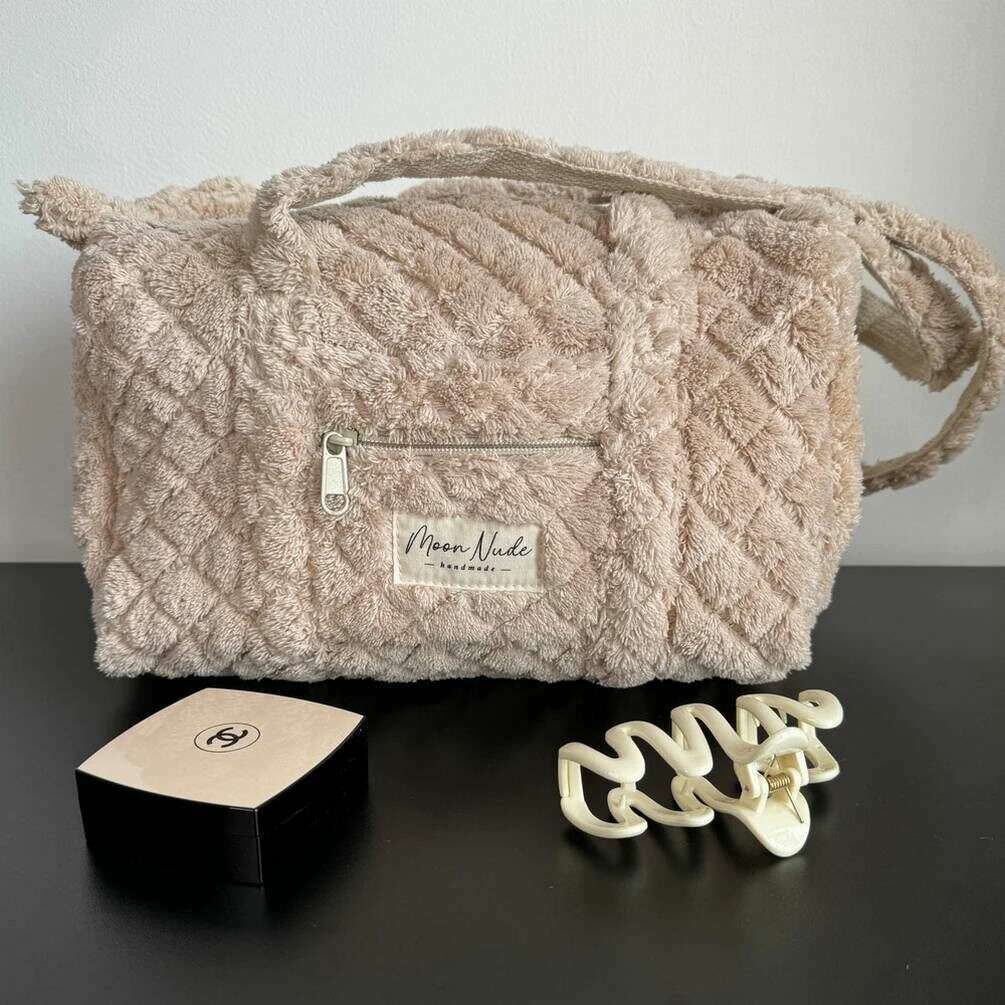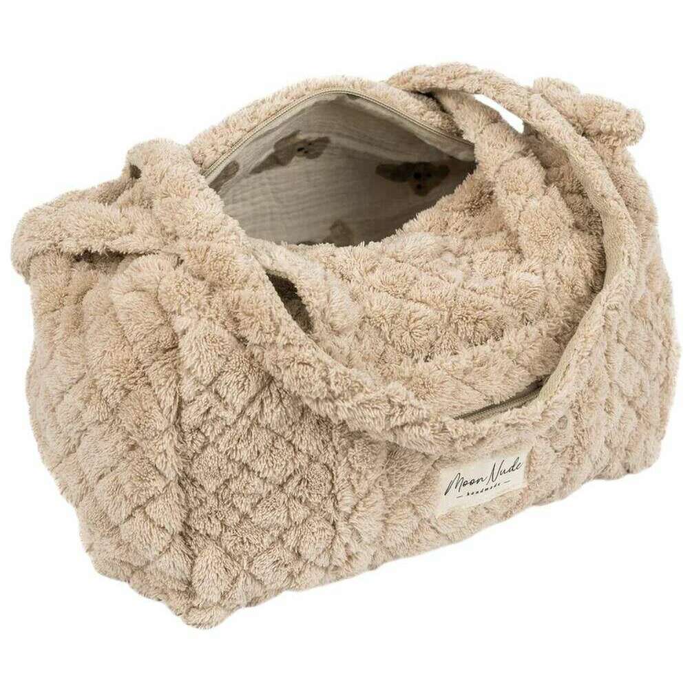 Perfect for women is this Moon Nude beige teddy mini duffel bag, it is also made from 100% cotton. It measures 18cm(height) x 31cm(width) x 18cm(depth). It is recommended to wash by hand in cold water with a mild detergent, or maching wash inside out on a delicate cycle. to keep this bag in good condition. All the bags come complete with moon nude packaging. The Moon Nude Teddy Mini Duffel Bag - Beige features a beautiful handmade quilted design. This bag features an exterior zip pocket, a spacious interior and two large handles, perfect for a casual going out bag or as a gift.