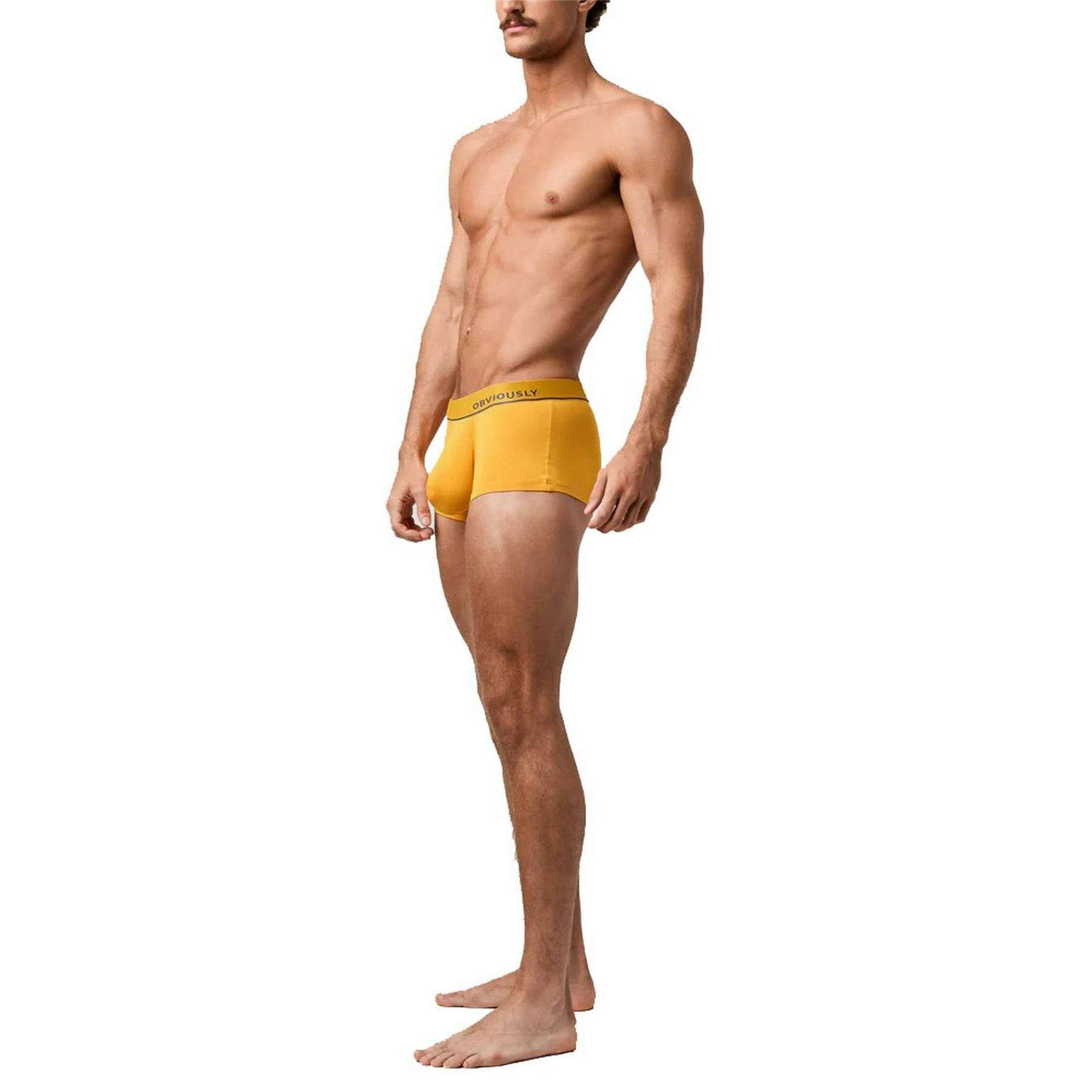 Perfect for men is this Obviously gold primeman trunk, it is also made from 90% micro modal and 10% lycra. Also the gold underwear is designed in a plain pattern, It is recommended to wash at 30 degrees or less and low tumble dry to keep this underwear in good condition. All the underwear comes complete with obviously packaging. The Obviously PrimeMan Trunk - Gold feature a slim fit design that is light and soft against your skin. Specifically designed for those men with smaller thighs the trunk is a great choice for your collection. Their anatomical pouch technology provides comfort and natural positioning when out for the day or night with no stress to re-adjust. They ensure optimal comfort throughout their wear and are light and airy so no need to worry about getting hot and stuffy. The material is eco-friendly, anti-bacterial, anti-fungal and hypo allergenic and the 4 way stretch fabric allows you to move freely. Produced with a low cut so they sit on the hip bones, you will have maximum comfort for that premium underwear experience.