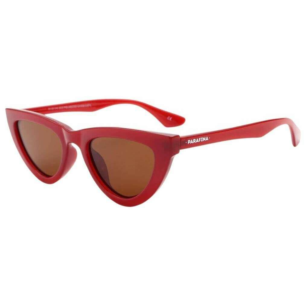 These unisex cima sunglasses by the brand Parafina are made from recycled plastic and are showcased in red. It measures 5.2cm(lense) x 1.7cm(bridge) x 14.5cm(temple). All the sunglasses come complete with parafina packaging. The Parafina Cima Sunglasses - Strawberry/Royal Caramel are equipped with polarized lenses, this sustainable eyewear provides optimal vision clarity, shielding the eyes from harmful UVA and UVB rays. With a focus on comfort, these sunglasses are designed to be lightweight and water-resistant, making them suitable for all-day wear without causing discomfort.