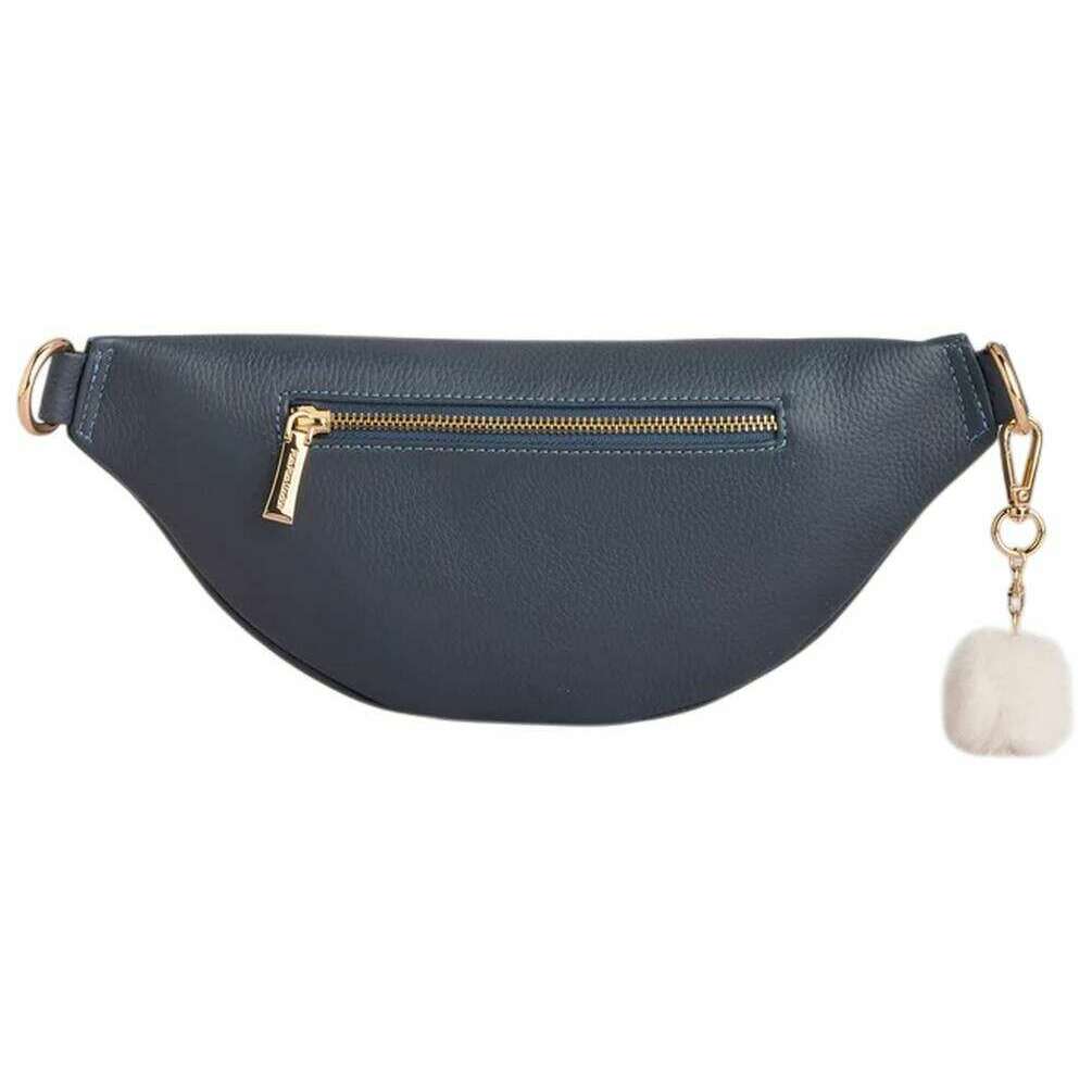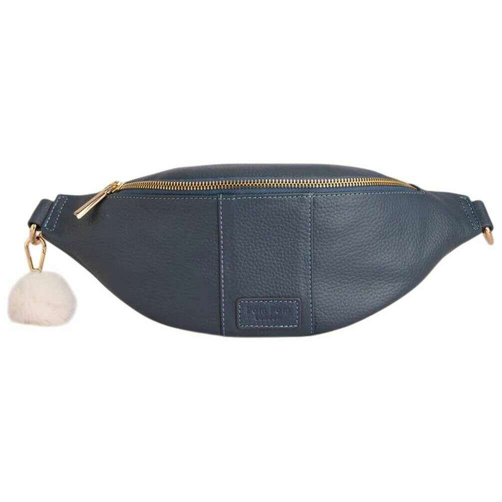 Perfect for women is this Pom Pom London slate blue bum bag, it is also made from 100% full-grain leather. It measures 12cm(height) x 33cm(width) x 11cm(depth). All the bags come complete with pom pom london packaging. The Pom Pom London Bum Bag - Slate Blue is designed for anyone seeking a stylish, hands?free option that doesn t compromise on elegance. Its sleek silhouette and modern appeal make it the perfect accessory for days on the move, travel adventures, or everyday errands. Crafted from full?grain leather, it delivers both durability and a luxurious finish. The bag features a versatile nylon strap that can be adjusted for a comfortable and personalised fit, whether worn around the waist or styled crossbody. For practical organisation, it includes a separate external zipped compartment that provides quick access to essentials, as well as an internal zip pocket designed to keep valuables secure and neatly arranged. Finishing the look, Pom Pom London s signature gold hardware adds a touch of iconic elegance that elevates this everyday essential.