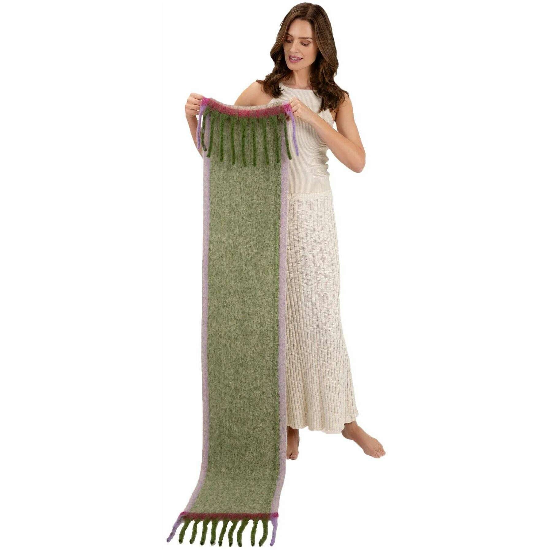 Brought to you by the brand Powder, this sage green women's aria cosy scarf is made from 100% polyester. It measures 224cm(height) x 36cm(width). Also the sage green scarf is designed in a block pattern, It is recommended to hand wash only, do not iron, do not tumble dry and do not dry clean to keep this scarf in good condition. All the scarves come complete with powder tags. The Powder Aria Cosy Scarf - Sage Green features a slightly narrower shape and a fringe which provides a neater finish. Adding a pop of colour to your winter wardrobe is done with ease as the striped design is bright and beautiful. Wrap up warm with this cosy scarf.