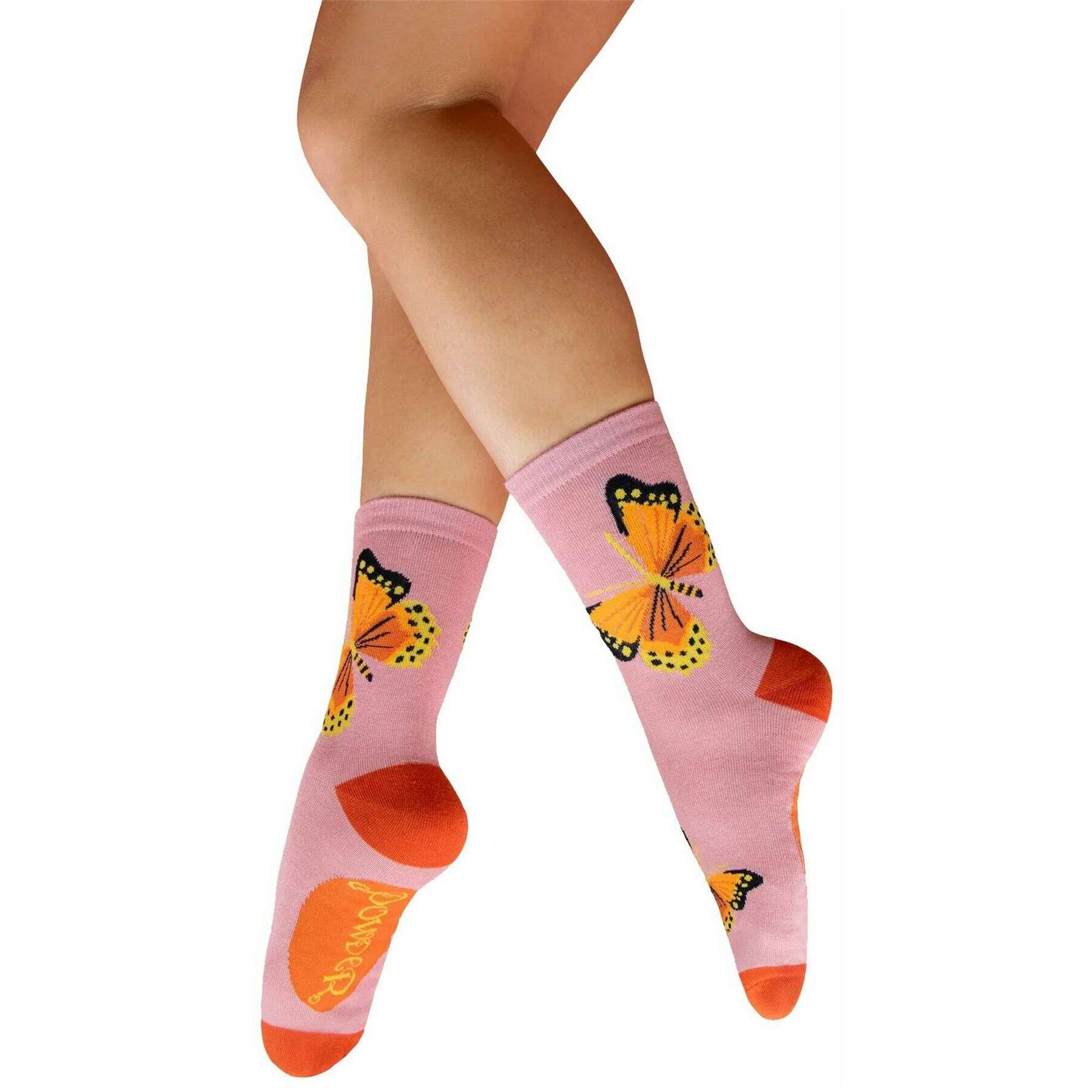 Powder Beautiful Butterflies Ankle Socks - Pink/Orange/Yellow
