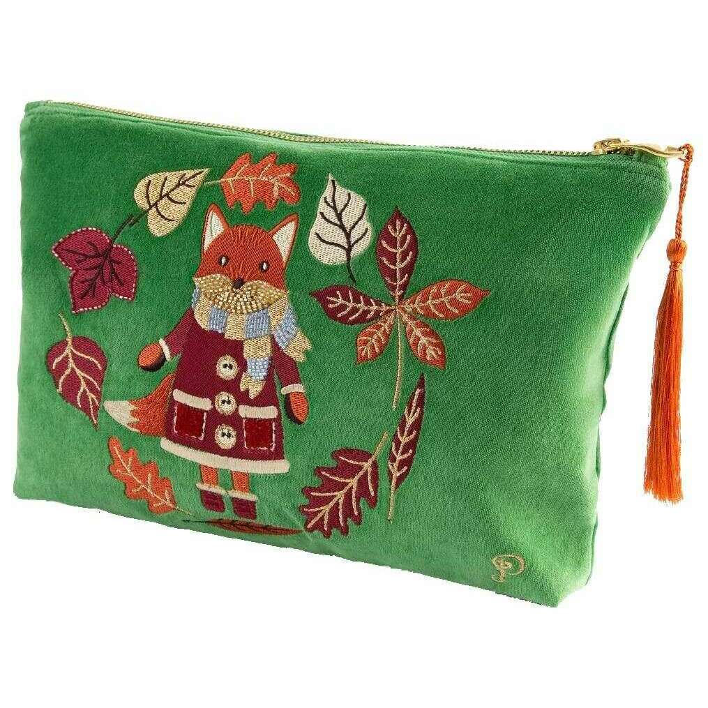 Powder Cosy Fox Velvet Zip Pouch - Fern Green