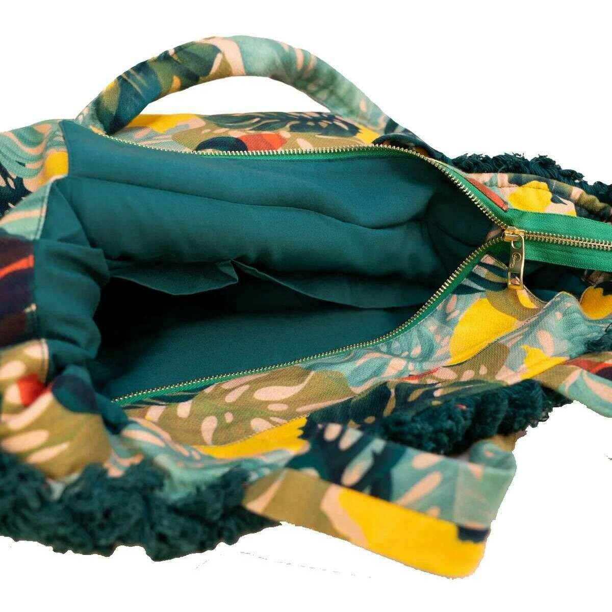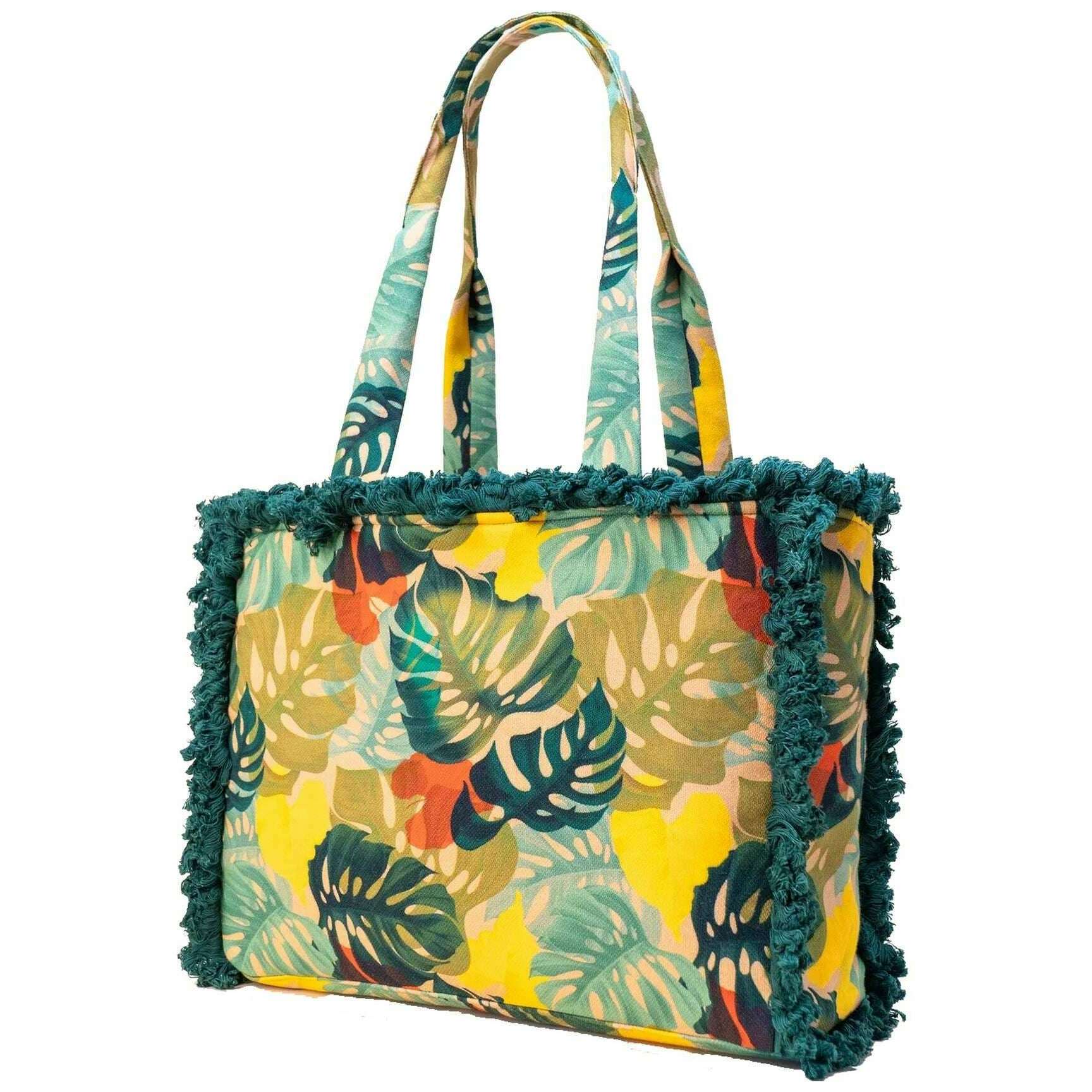 Designer Powder has brought you this women's 100% cotton bag using blue/beige/yellow tones. It measures 49cm(height) x 66cm(width) x 9cm(depth). All the bags come complete with powder packaging. The Powder Exotic Leaves Fringe Box Tote - Blue/Beige/Yellow is a practical and diverse bag that can be used for everyday outings, trips to the beach or a picnic in the park. The stunning fringe detail adds timeless flair, and the twin carry handles make it a comfortable carry, whether that be over the shoulder or at your side. This piece offers easy storage with its open compartment in which you can just chuck things in and pull them right out.