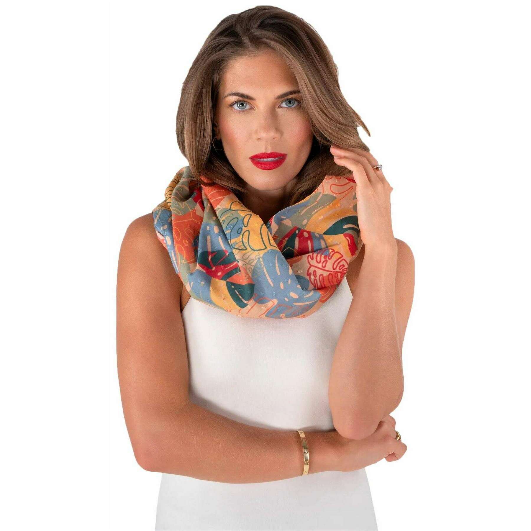 Powder Exotic Leaves Infinity Scarf - Blue/Red/Yellow