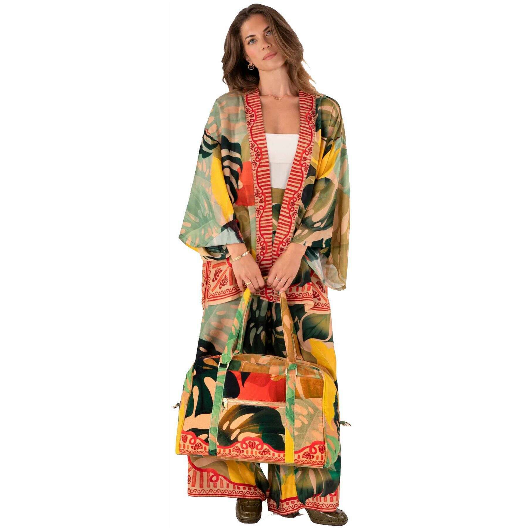 Powder Exotic Leaves Luxe Weekend Bag - Beige/Red/Green