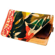 Powder Exotic Leaves Velvet Sunglasses Pouch - Beige/Red/Green