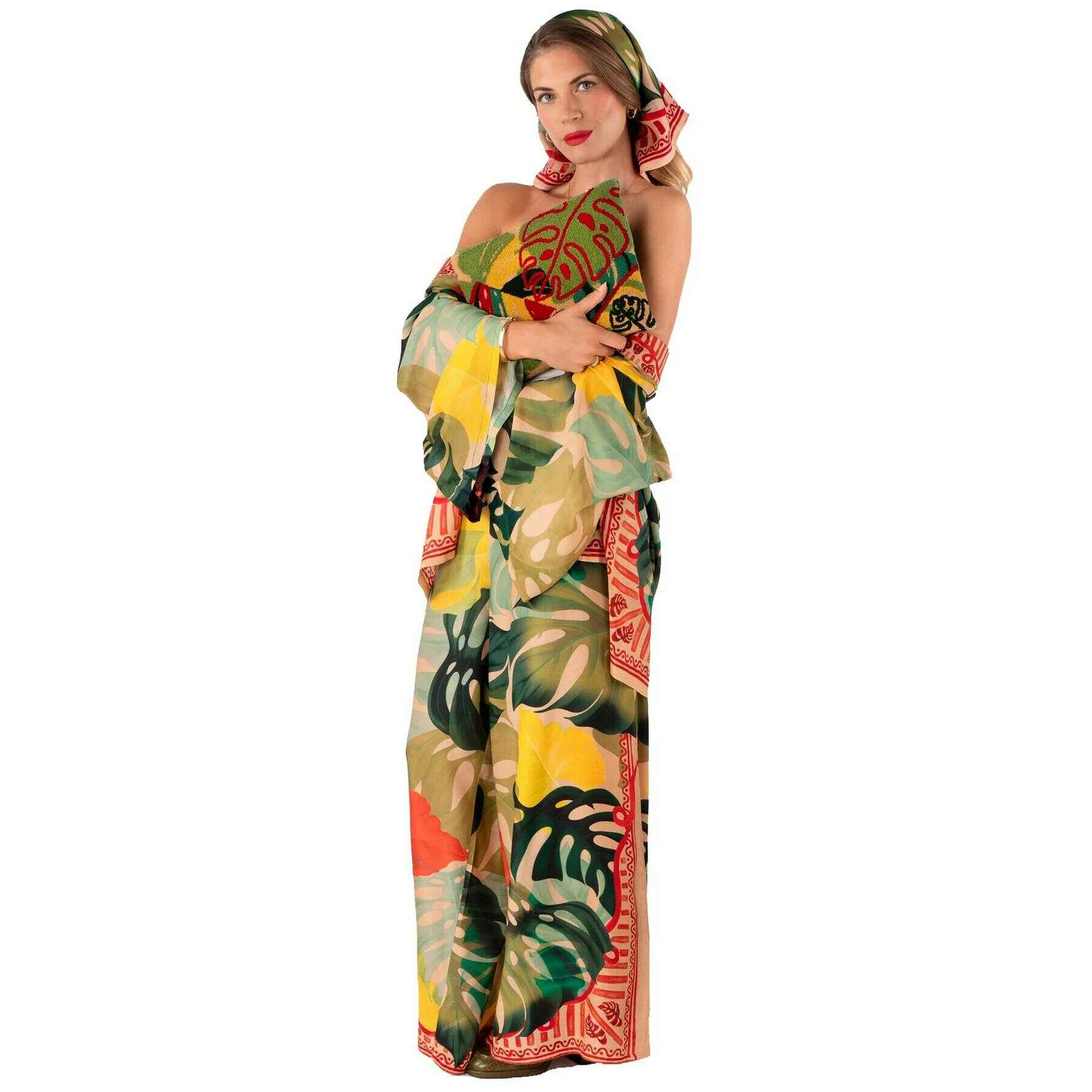 Powder Exotic Leaves Wool Pouch - Red/Green/Beige