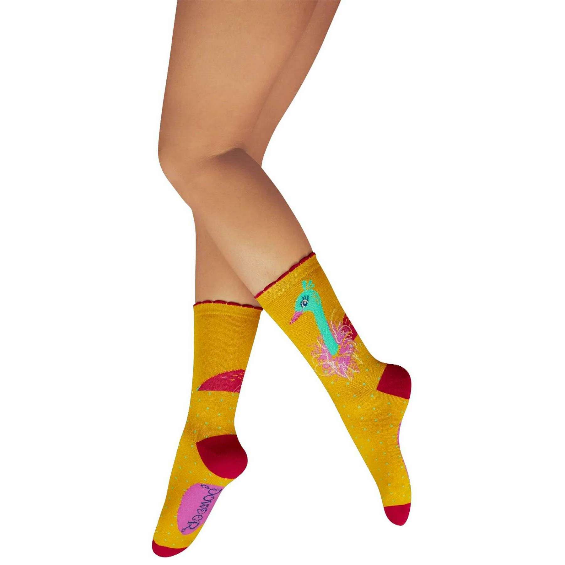 Designer Powder have brought you these women's 65% bamboo, 15% cotton, 10% nylon and 10% elastane socks using yellow/red/blue tones. Also the yellow/red/blue socks are designed in a polka dot pattern, It is recommended to wash at 30 degrees to keep these socks in good condition. All the socks come complete with powder sock tags. The Powder Funky Emu Ankle Socks - Yellow/Red/Blue feature a fun, playful design that will be a joyful addition to any of your outfits. Made using bamboo these socks are incredibly comfortable and durable. The rich colouring and playful background ensure these socks standout. Perfect as a gift these yellow and red socks are ideal for summery outfit.