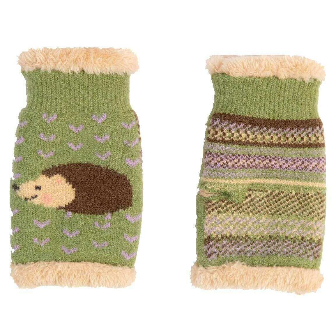 Designer Powder have brought you these women's 52% acrylic, 28% nylon and 20% polyester gloves using sage green tones. It measures 18cm(height) x 10cm(width). Also the sage green gloves are designed in a unique pattern, It is recommended to hand wash only to keep these gloves in good condition. All the gloves come complete with powder tags. The Powder Hedgehog Wrist Warmers - Sage Green are a great way to add a pop of colour to dark and gloomy winter days and nights. Due to the open top, you are free to use your phone whilst still keeping your hands and wrists warm and toasty as the ribbed elasticated top and bottom ensures heat is kept in.