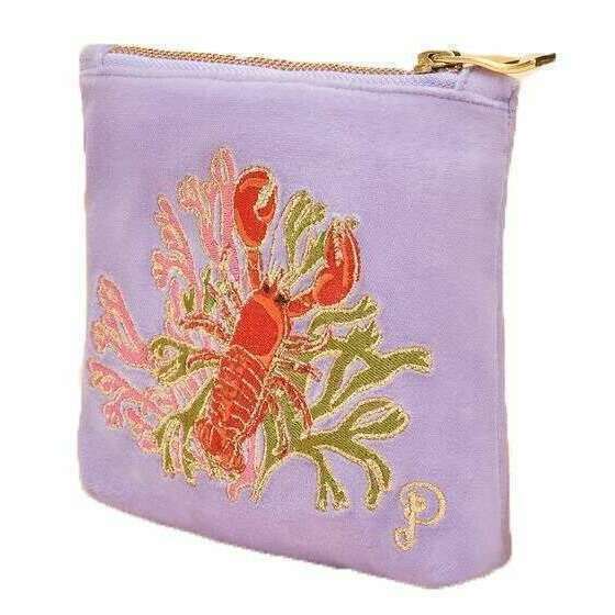 This women's lobster buddies velvet embroidered mini pouch by the brand Powder is made from 100% polyester velvet and is showcased in purple. It measures 18cm(height) x 14cm(width). It is recommended to dry clean only to keep this bag in good condition. All the bags come complete with powder tags. The Powder Lobster Buddies Velvet Embroidered Mini Pouch - Lavender Purple will be a glamorous addition to your day-to-day life. Perfect for storing all your essentials this pouch bag is ideal as a gift. The fun lobster buddies design with the rich lavender colouring gives the mini pouch a feminine edge that you are sure to love!