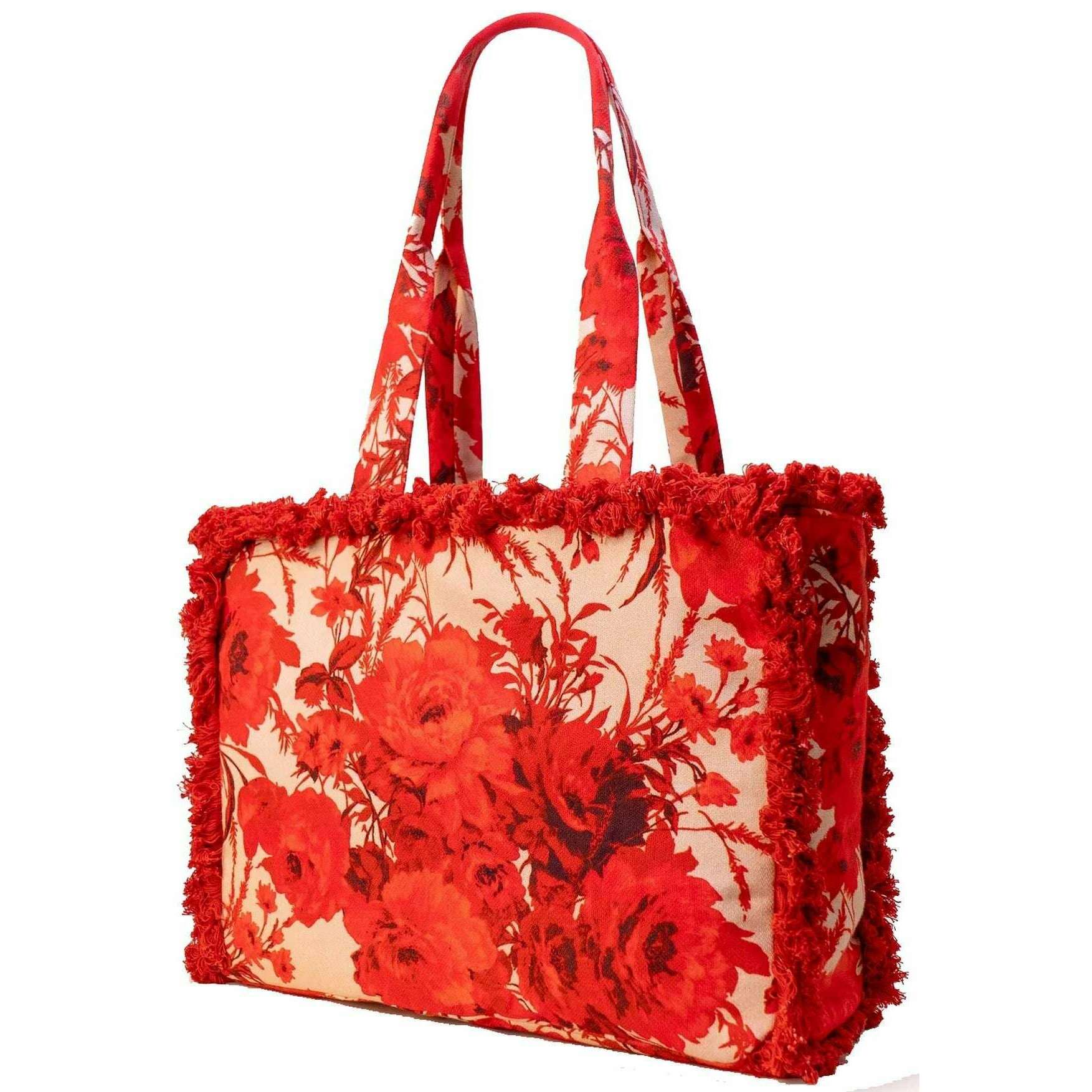 Using red 100% cotton, this rouge blooms fringe box tote by Powder is perfect for women and a must have. It measures 49cm(height) x 66cm(width) x 9cm(depth). All the bags come complete with powder packaging. The Powder Rouge Blooms Fringe Box Tote - Red/Beige is a practical and diverse bag that can be used for everyday outings, trips to the beach or a picnic in the park. The stunning fringe detail adds timeless flair, and the twin carry handles make it a comfortable carry, whether that be over the shoulder or at your side. This piece offers easy storage with its open compartment in which you can just chuck things in and pull them right out.