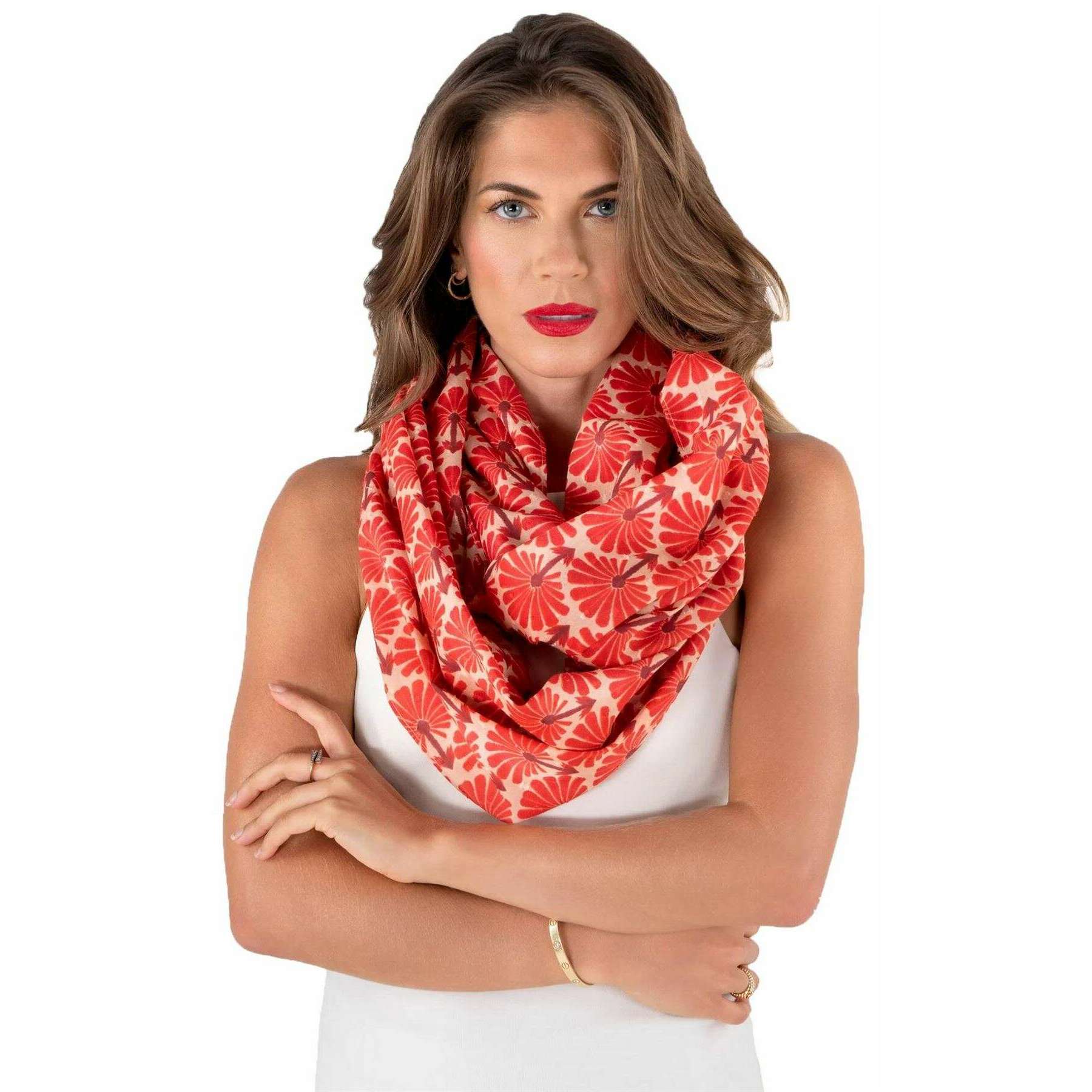 Powder Rouge Palms Infinity Scarf - Red/Beige