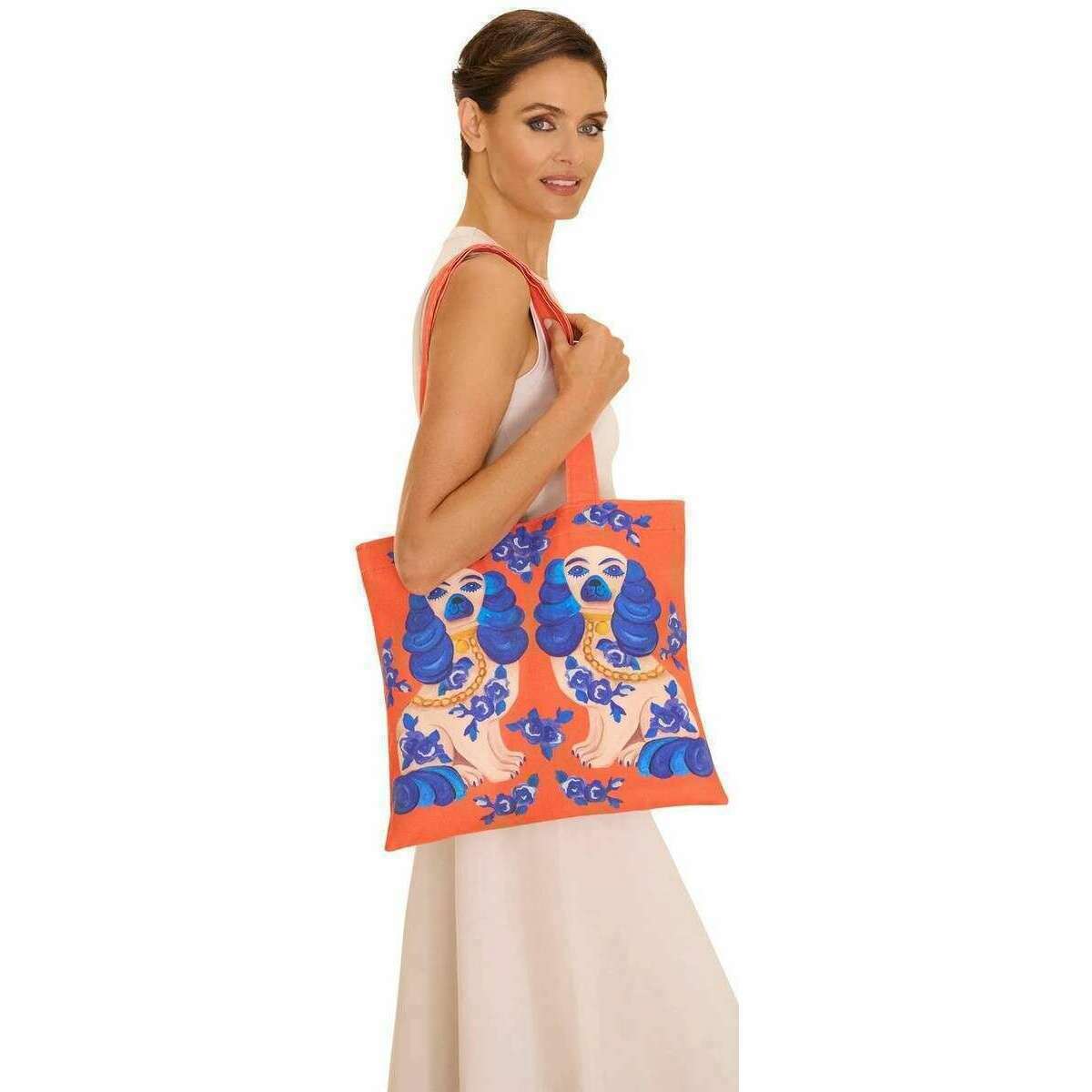 Powder Splendid Spaniels Canvas Tote Bag - Orange/Blue