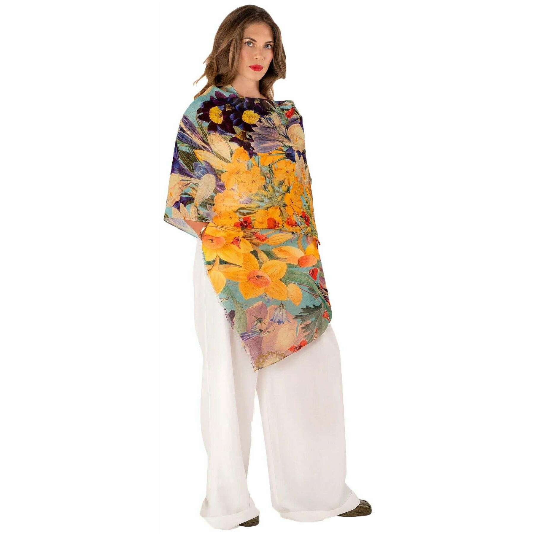 Powder Spring Flora Linen Cotton Scarf - Yellow/Blue/Beige