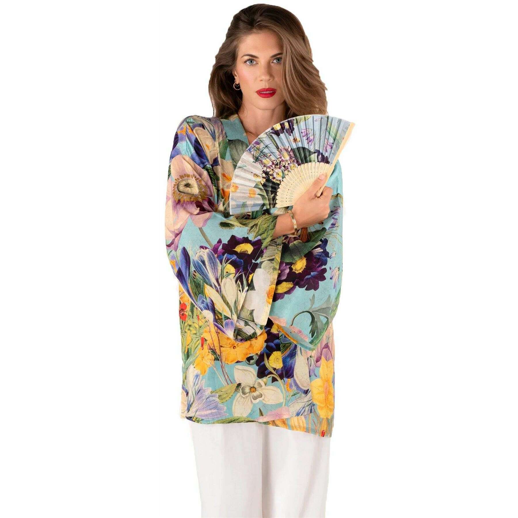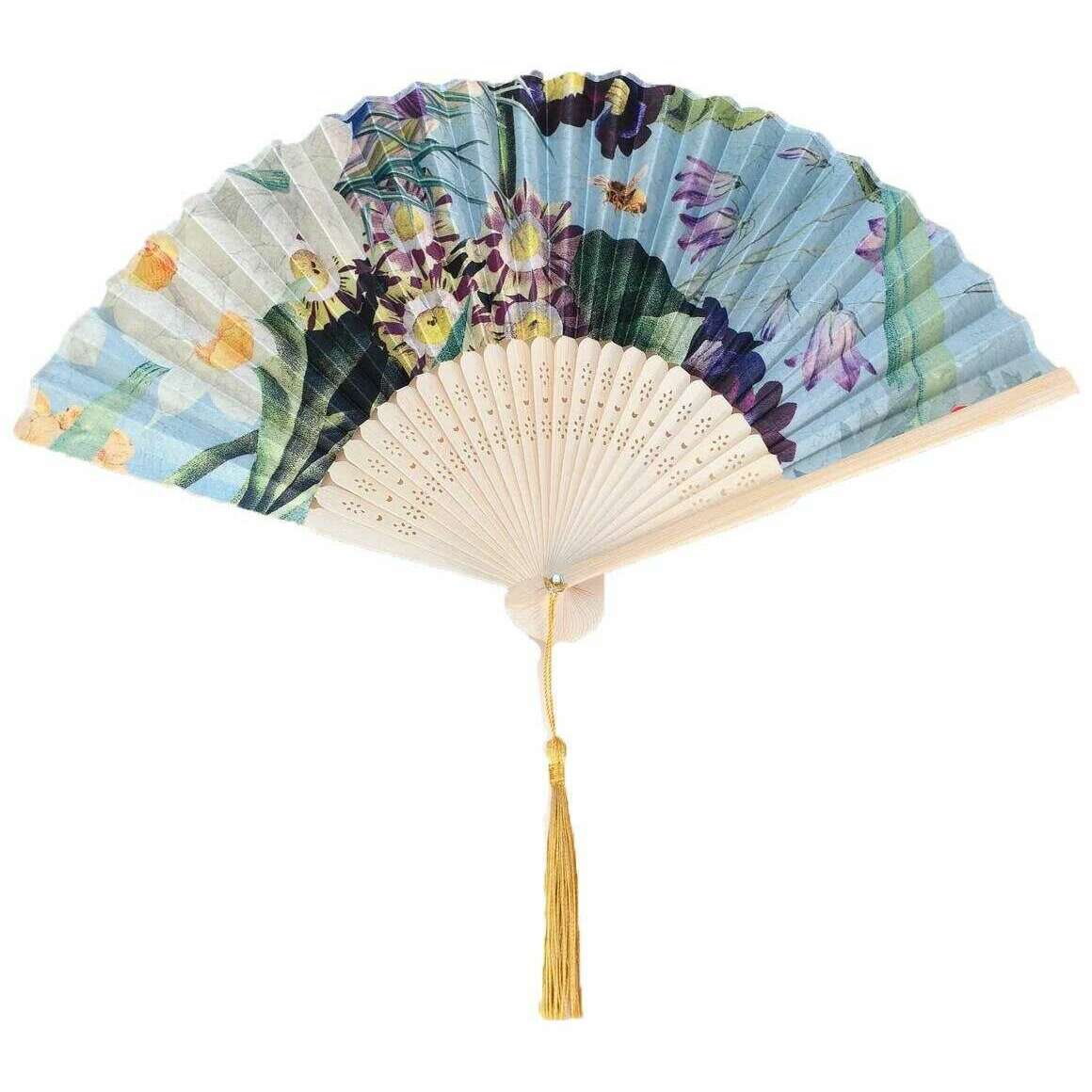 Powder Spring Flora Satin Fan - Blue/Purple/Green