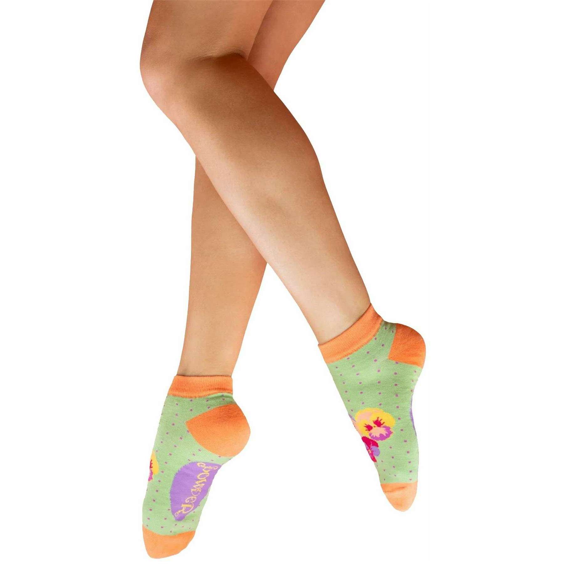 Powder Spring Pansies Trainer Socks - Green/Orange/Purple