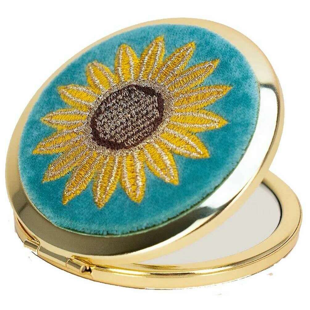 Powder Summer Sunflower Embroidered Mirror - Blue/Yellow/Brown