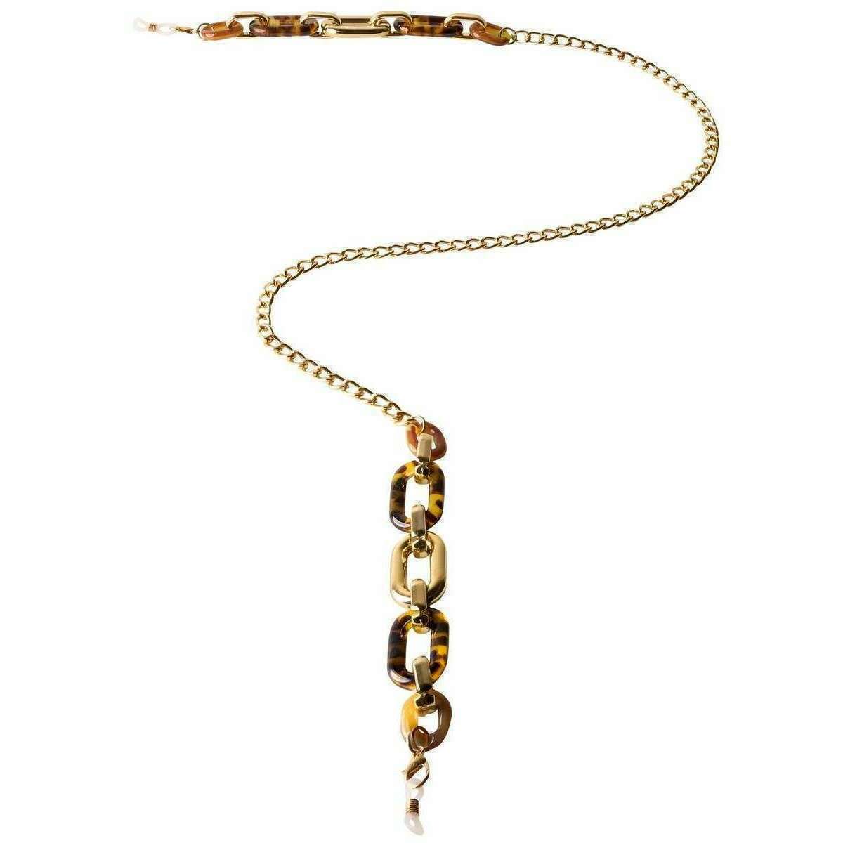 Powder Tortoiseshell Link Sunglasses Chain - Brown/Gold