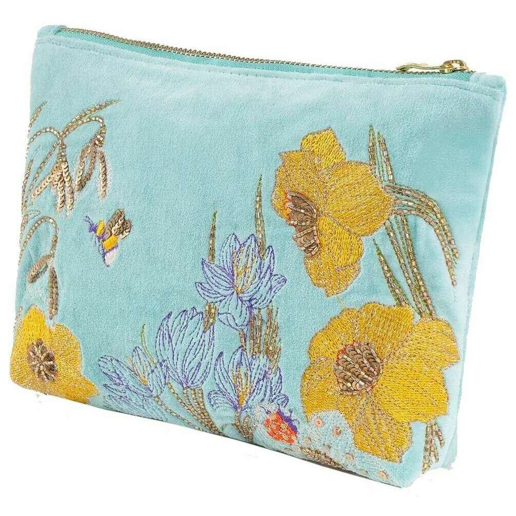 Powder Wildflower Meadow Mid Size Embroidered Zip Pouch - Yellow/Blue/Beige
