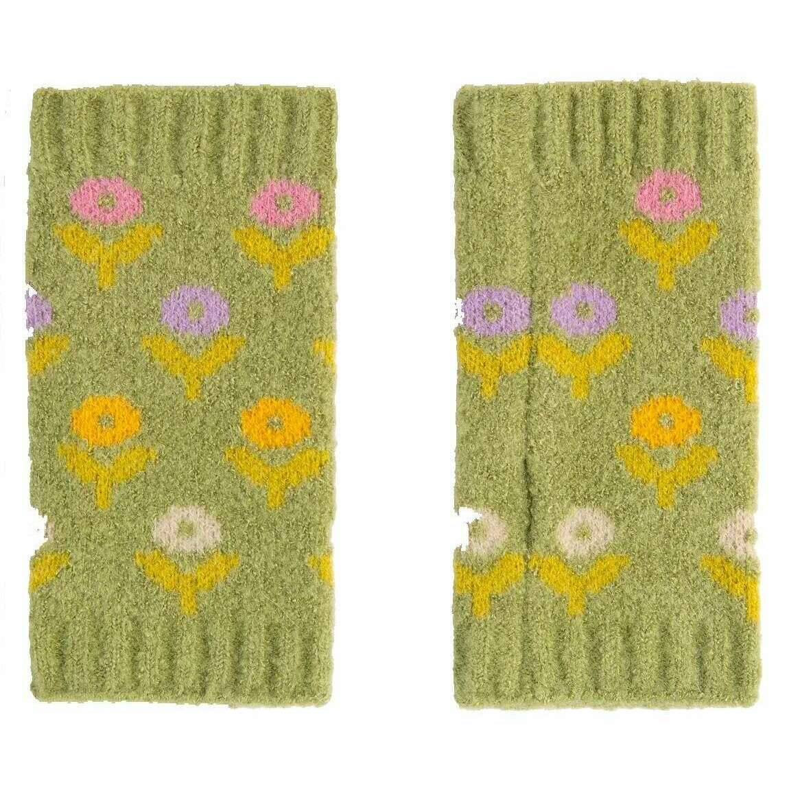 Powder Willow Ditsy Flower Wrist Warmers - Sage Green