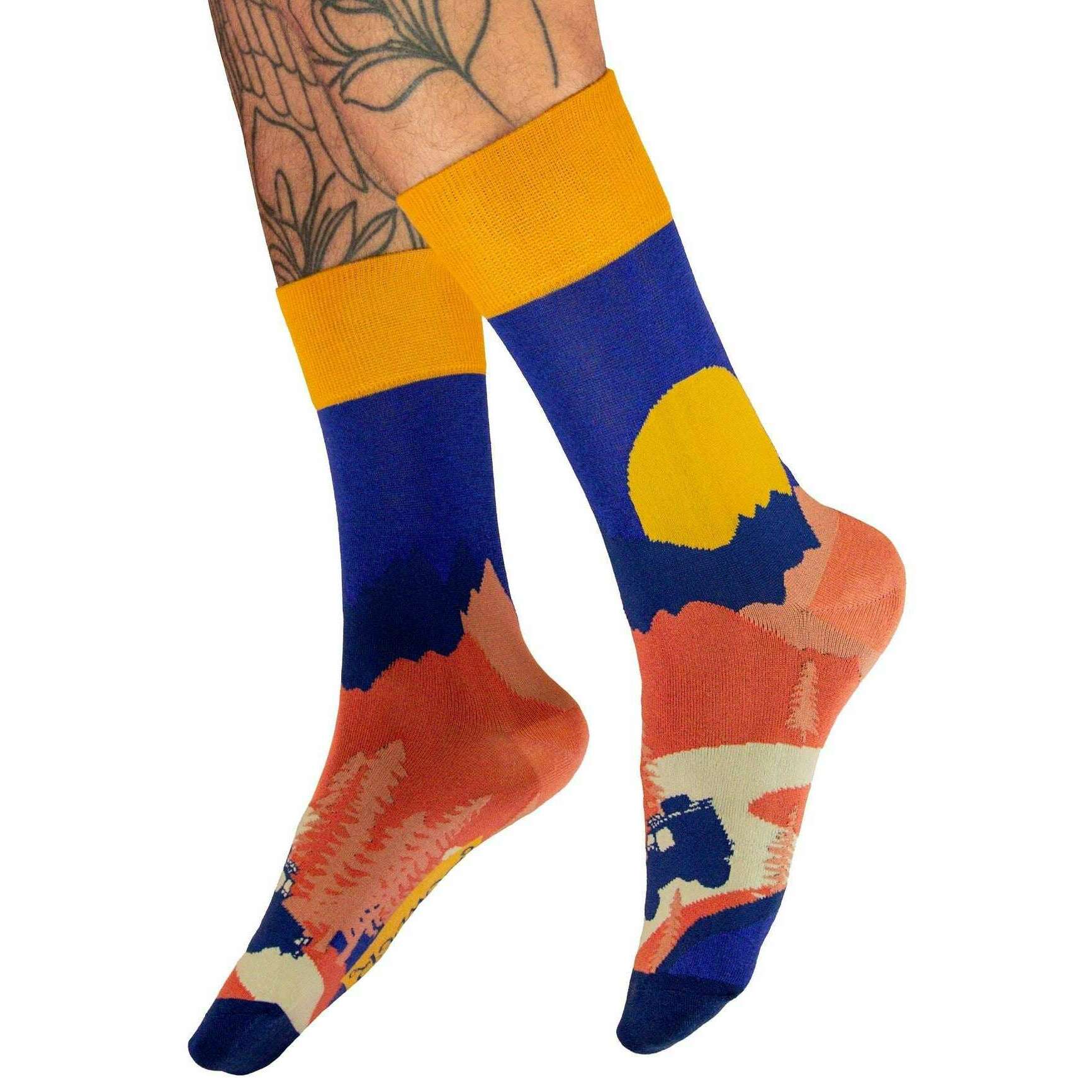 Powder Winding Road Socks - Blue/Yellow/Pink