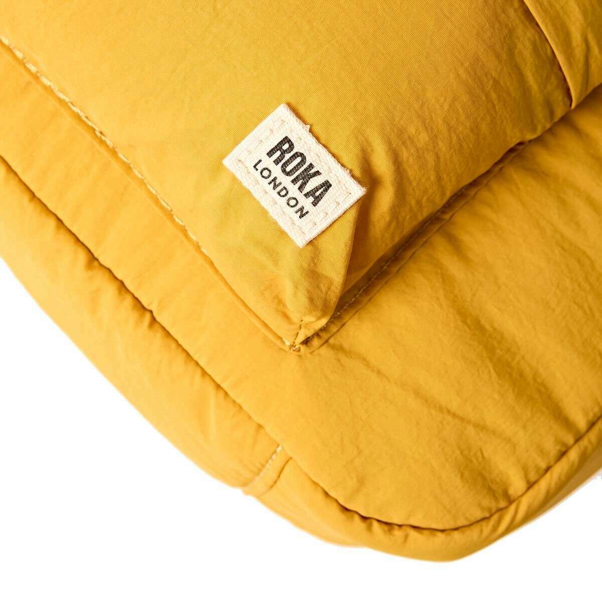 This belsize recycled taslon small handbag for men or women is fashioned by the brand Roka in a yellow colour and is made from 100% recycled nylon. It measures 25cm(height) x 28cm(width) x 10cm(depth). All the bags come complete with roka packaging. The Roka Belsize Recycled Taslon Small Handbag - Corn Yellow is a stylish and versatile puff taslon bag that combines functionality with a delightful design. With a strap that allows you to wear over the shoulder, this smaller bag features a spacious interior, nylon zipped pocket and extra compartments for all your essentials. There is an external puffed B-pocket for quick access to your most used items whilst on the move. Perfect for work, travel or weekend adventure, while giving off contemporary, eye-catching vibes.