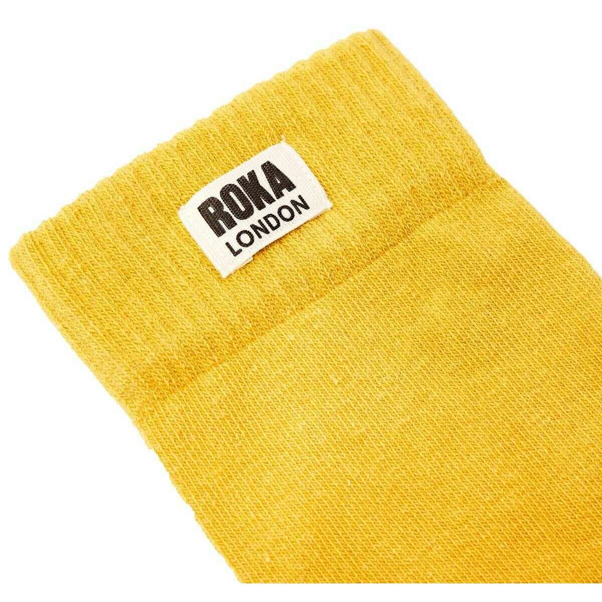 Designer Roka have brought you these women's 82% organic cotton, 10% nylon and 2% elastane socks using corn yellow tones. Also the corn yellow socks are designed in a plain pattern, All the socks come complete with roka packaging. The Roka Wimbledon socks - Corn Yellow crafted from a soft organic cotton blend, these socks offer lightweight breathability to keep your feet feeling fresh from morning workouts to evening coffee runs. The classic crew length adds a versatile touch, making them the perfect everyday essential for movement and style. The ribbed structure ensure they re the pair you ll reach for time and time again.