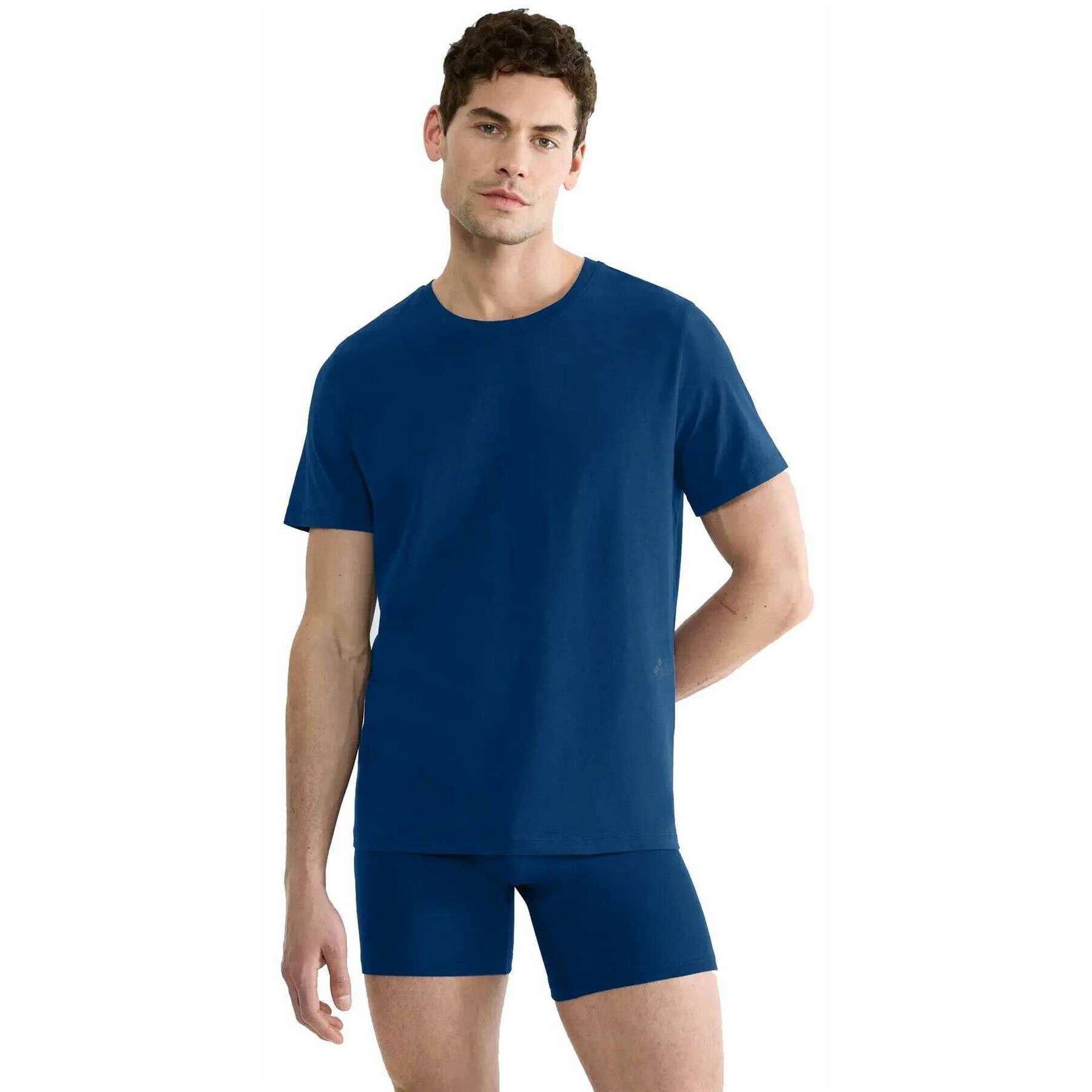 Using blue 95% cotton and 5% elastane, this slg base o-neck t-shirt by Sloggi is perfect for men and a must have. Also the ultramarine blue t-shirt is designed in a plain pattern, It is recommended to machine wash at 40 degrees to keep this t-shirt in good condition. All the t-shirts come complete with sloggi packaging. The Sloggi SLG Base O-Neck T-Shirt - Ultramarine Blue perfect for versatile styling whilst offering optimal comfort. The round neck and regular fit design gives a versatile modern and contemporary look that can be styled in endless ways. Crafted with eco-certified organic cotton offers great sustainability for environmental help whilst giving you freedom of movement during your everyday travels with the elastane content.