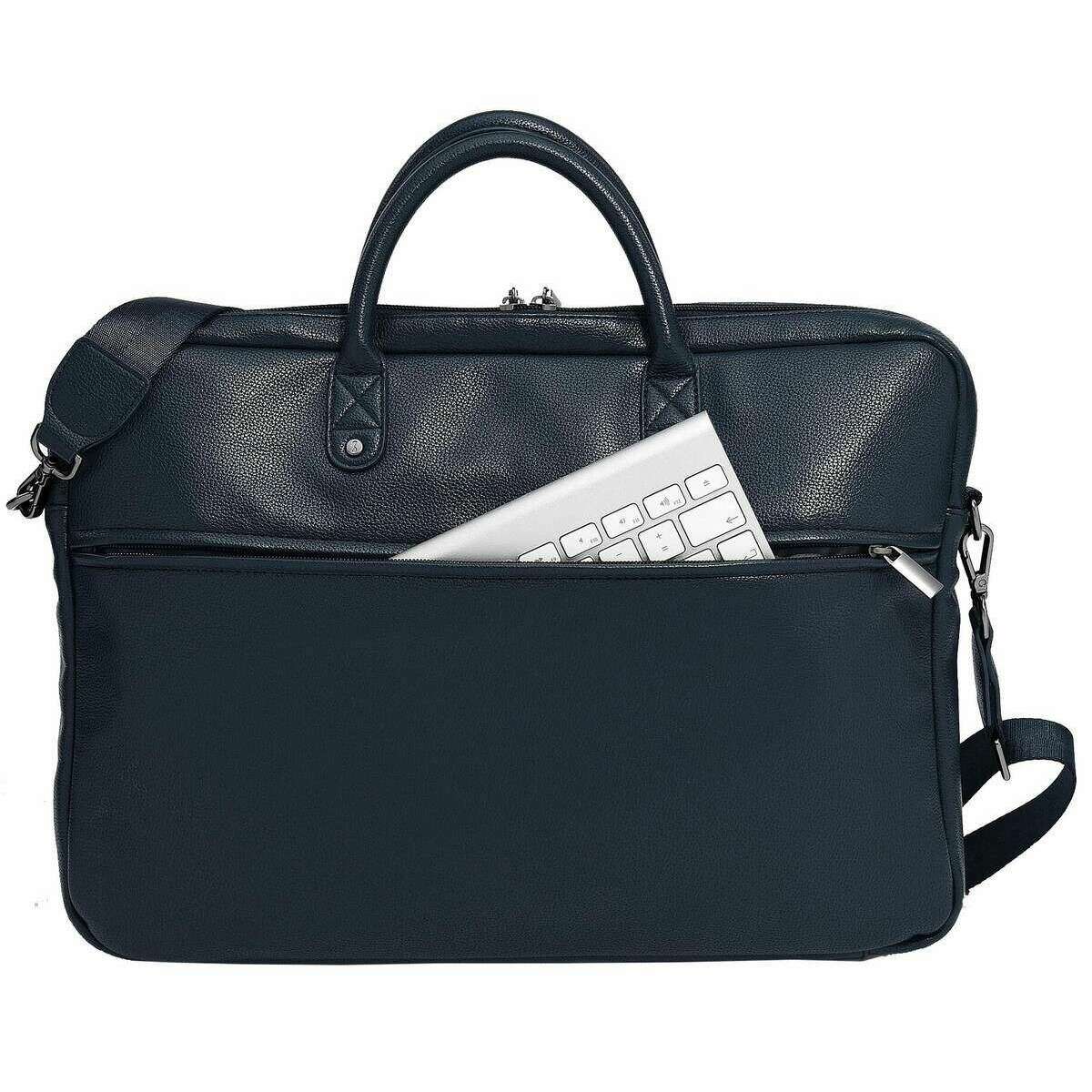 Manufactured from faux leather is this navy blue women's 16inch laptop bag by the designer Stackers. It measures 37cm(height) x 9cm(width) x 43cm(depth). All the bags come complete with stackers packaging. The Stackers 16inch Laptop Bag - Navy Blue is a must have when on the go! This classy blue laptop bag features stationary space, multiple pockets and a large external back pocket. Perfect for everyday use with its crossbody strap.