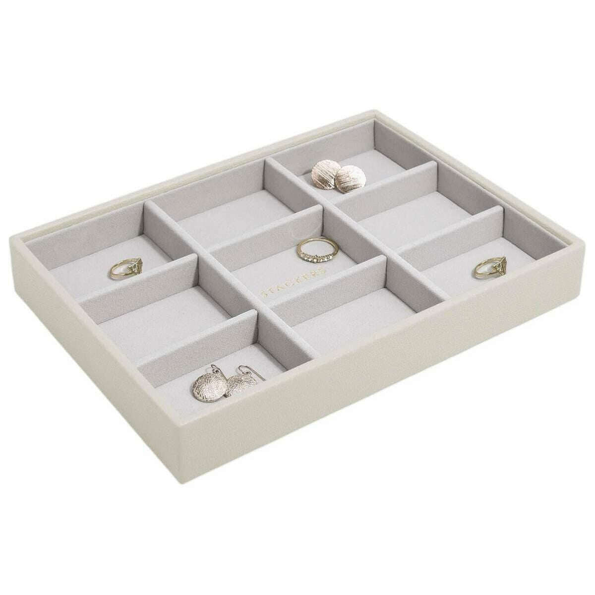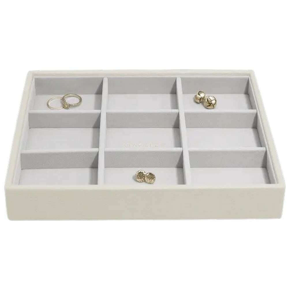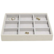 Brought to you by the brand Stackers, this oatmeal cream women's classic statement layer is made from faux leather and velvet. It measures 3.7cm(height) x 25cm(width) x 18cm(depth). It is recommended to wipe clean to keep this jewellery box in good condition. All the jewellery boxes come complete with stackers packaging. The Stackers Classic Statement Layer - Oatmeal Cream has been cleverly created and designed to hold all of your earrings, rings or hair clips perfectly. It can be added to any other classic jewellery tray to create a jewellery box or it can be used on its own. You won't have to compromise on organisation.