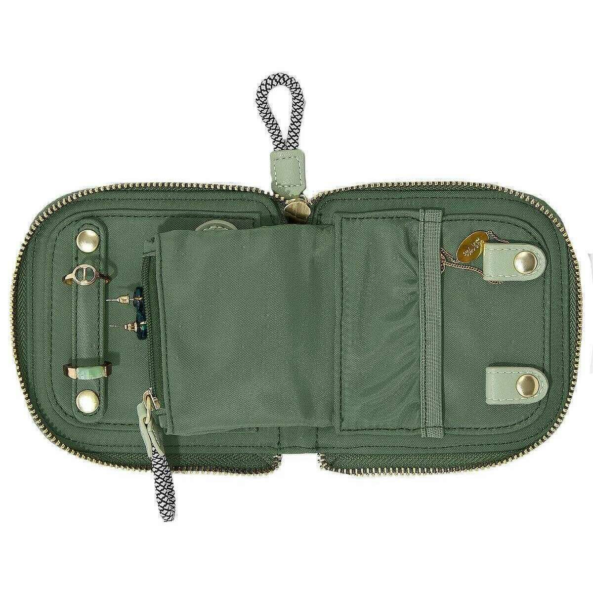 This women's compact jewellery roll has been made from recycled nylon, featured in a green colour and is from the brand Stackers. It measures 11.1cm(height) x 11.1cm(width) x 2.4cm(depth). All the jewellery boxes come complete in stackers packaging. The Stackers Compact Jewellery Roll - Green perfect for your travels whether that’s a short weekend away, a longer vacation, or just for your gym bag. This case has space for up to 4 pairs of earrings, a few rings, 2 necklaces, and a few trinkets with its sweet small zipper pouch in the middle. The zipper closure ensures security and a worry-free mindset knowing your jewellery and accessories are safe.